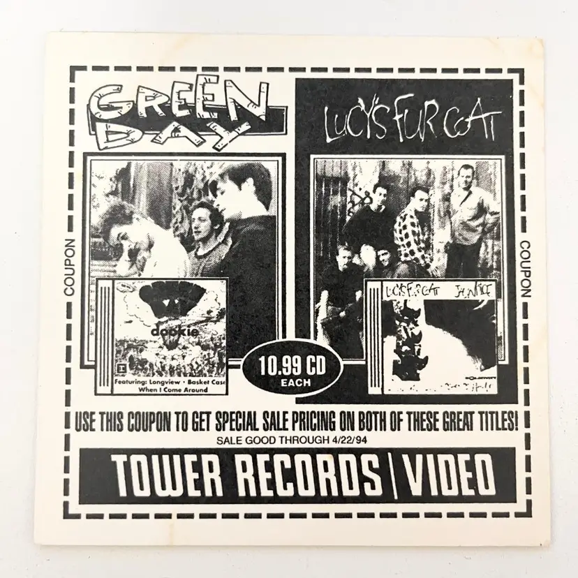 KROQ Sticker Decal Tower Records Promo for Lucy's Fur Coat CD Vintage 1990s Condition: The paper is toned, discolored on the back side Measures 4-1/4 inches x 4-1/4 inches Packaged in a plastic sleeve inside a rigid envelope Visit my store to see more vintage ephemera, advertising, novelties, gifts, estate sale and yard sale finds https://district.net/u/finderspickerspaper SKU Decals