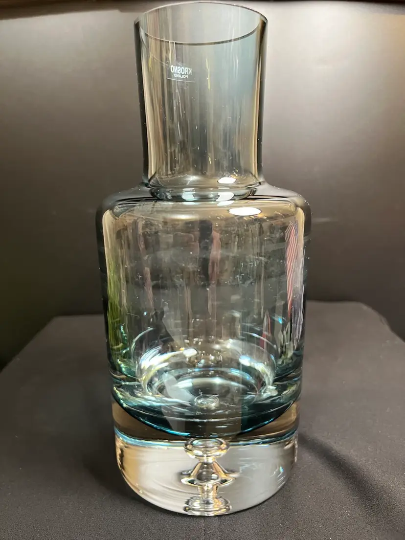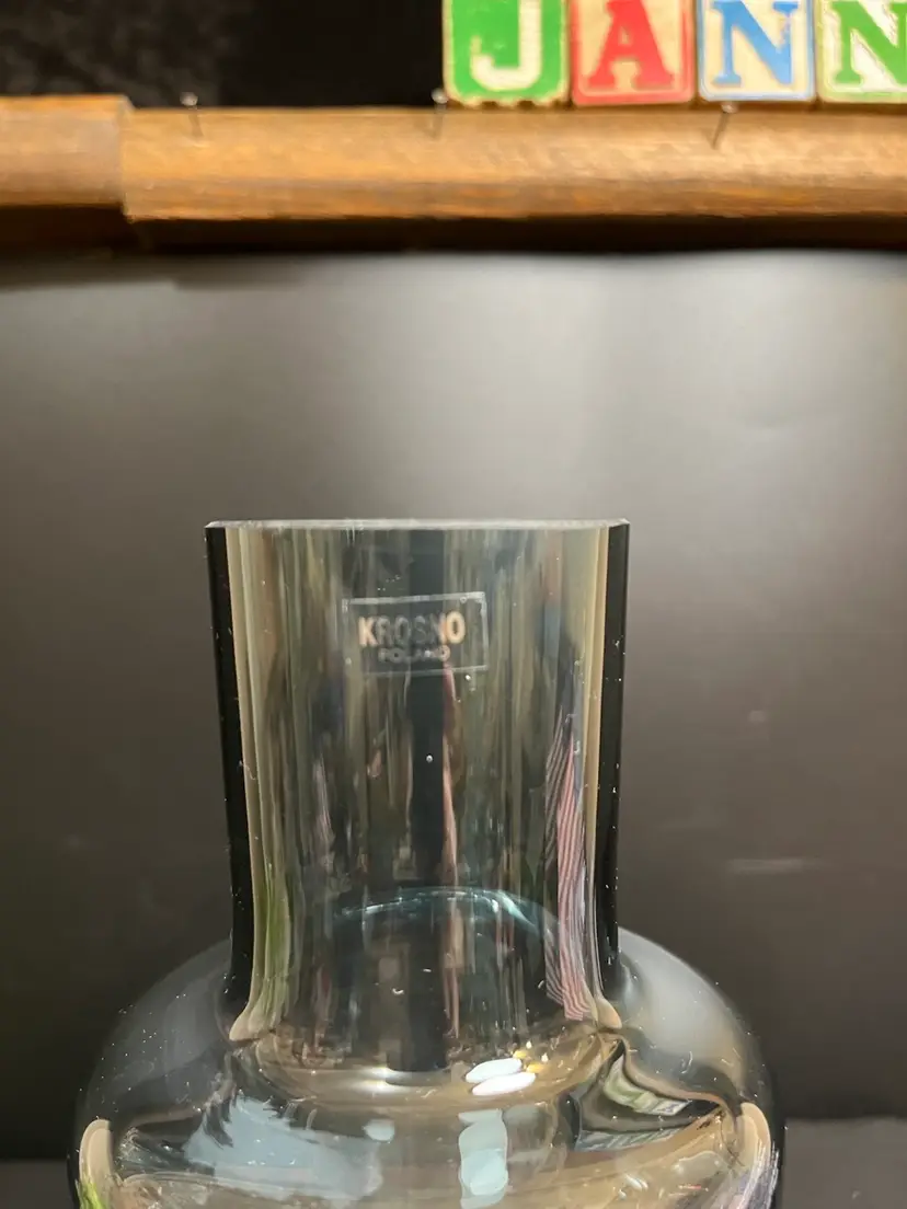 Krosno Sticker is on the neck. This is in excellent condition, but minus the glass. There are no bruises, chips or cracks. Measures approx 8" H, 3.5" Diameter at base, 2 Lb 2 Oz