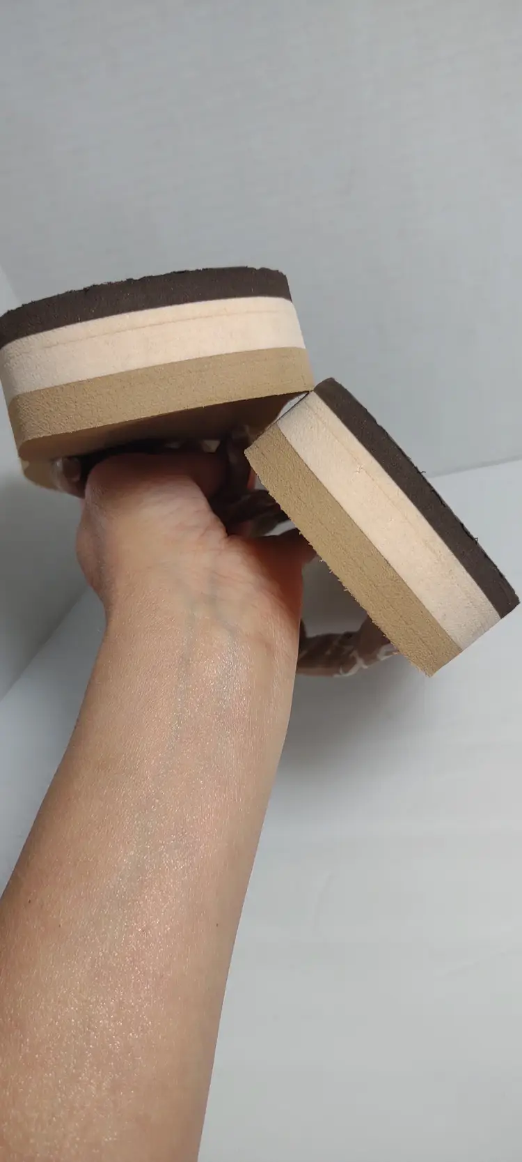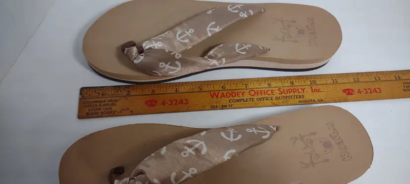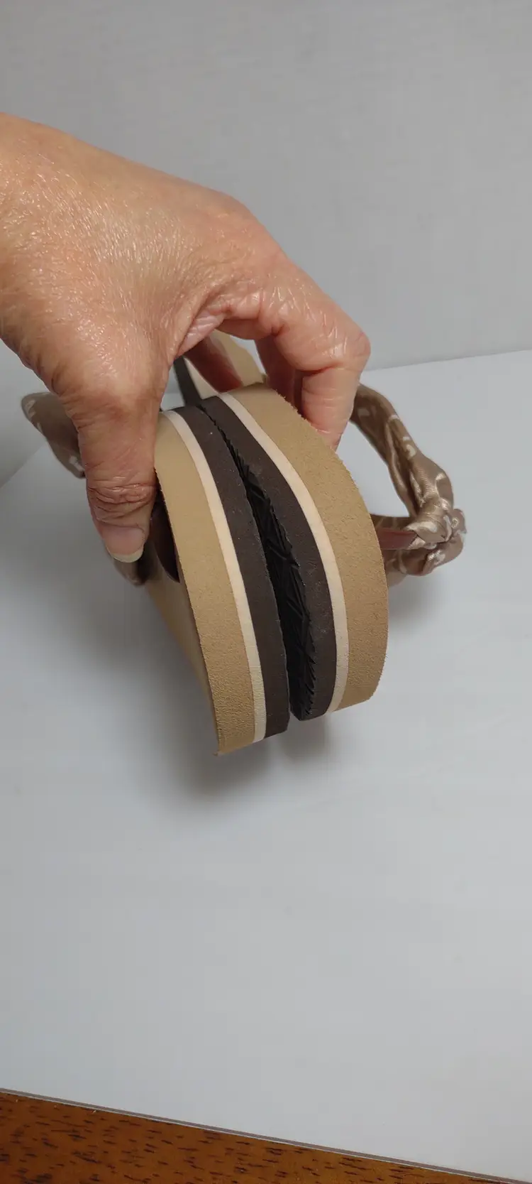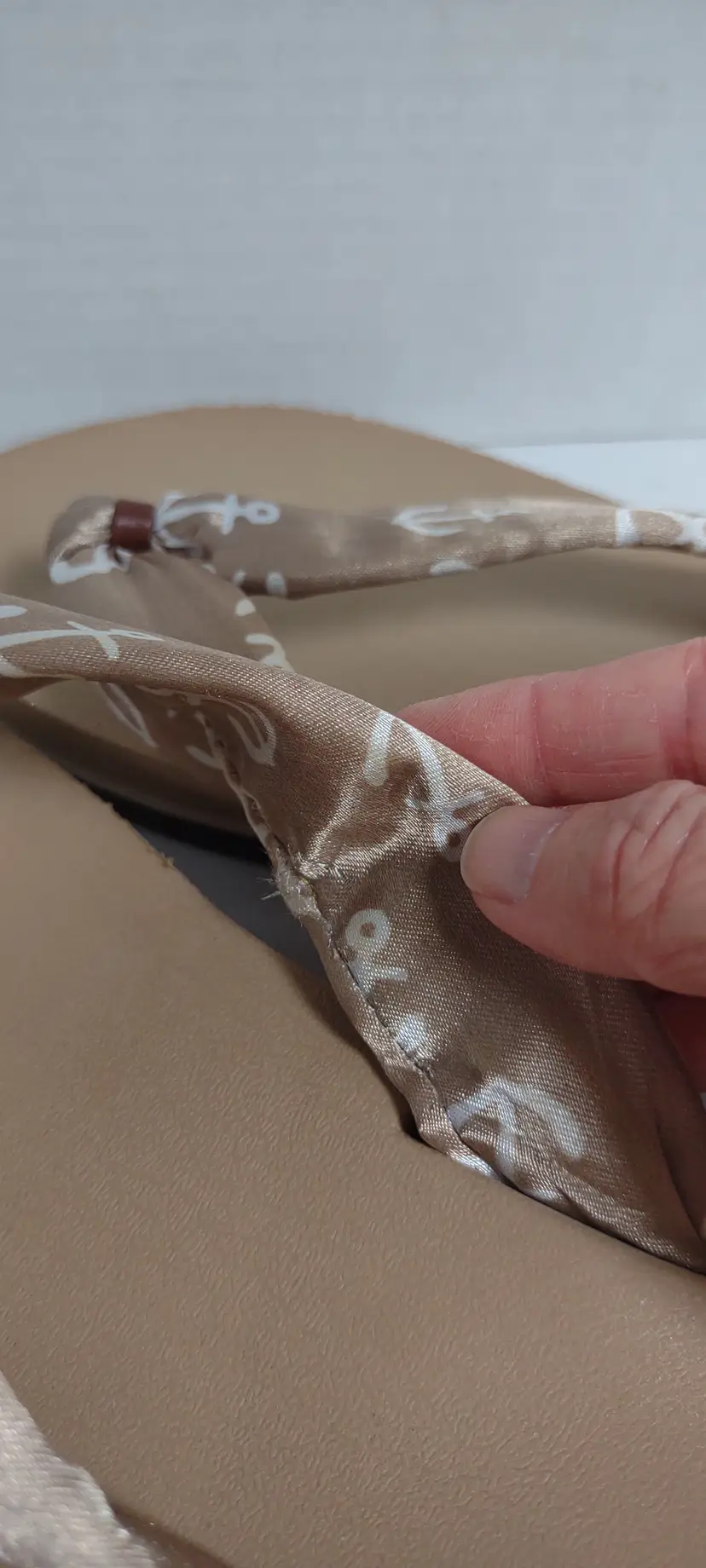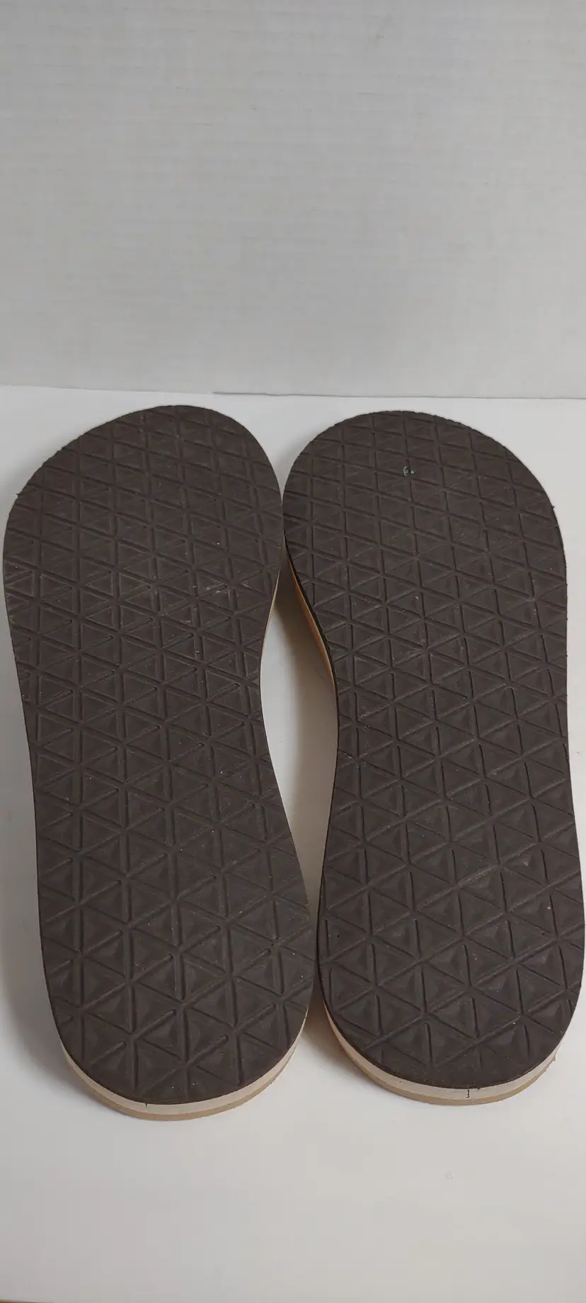 In good used condition. A tiny bit frayed in the seem. I do not have the exact size. That's why I show measurement in photo. 11"