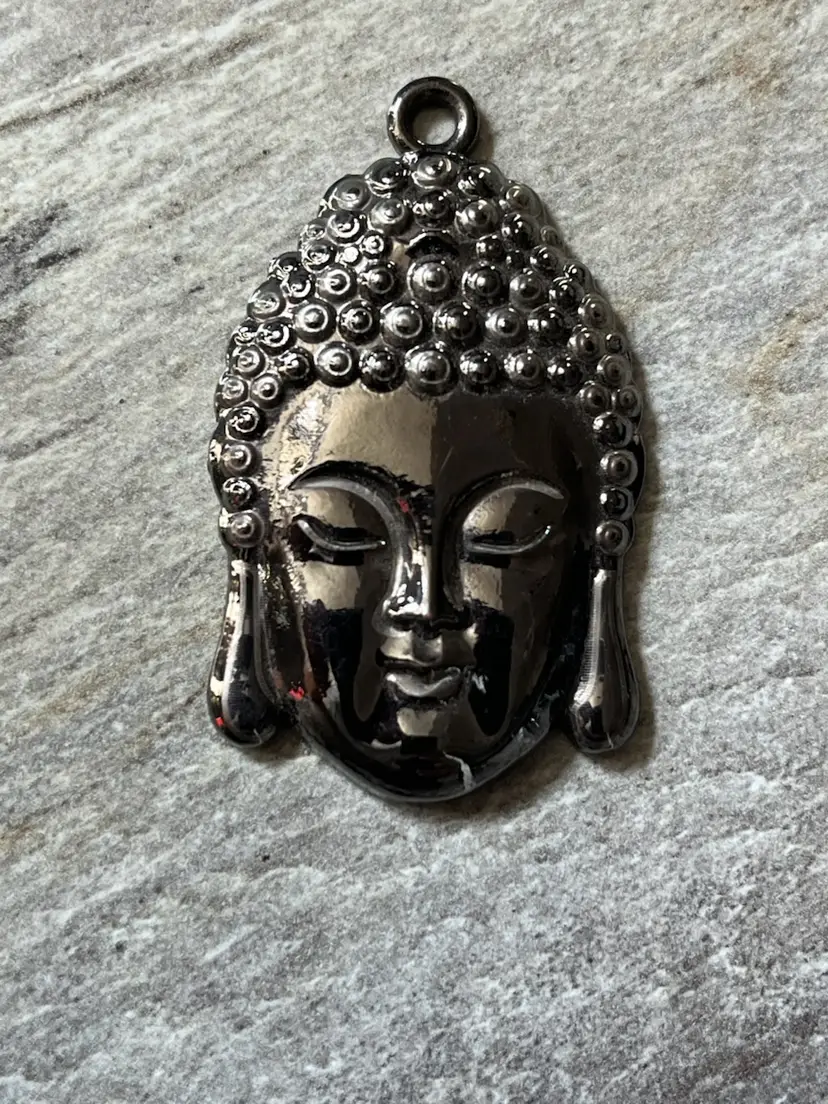 A Kwan Yin pendant. She is approximately 1 7/8 inches tall and 1 inch wide. I have had a time trying to get a good picture of her. The metalic surface is either too dark or light. She is pretty!