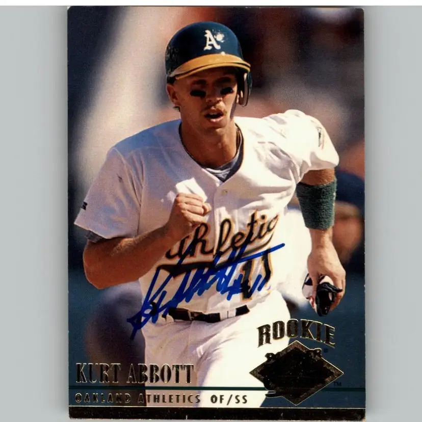 Authentic rookie card of Kurt Abbott from the Oakland Athletics, adorned with his original signature. A must-have for collectors and fans of the A's. Support our veterans with your purchase, as all proceeds benefit Signatures For Soldiers. 100% of all proceeds goes directly to Signatures For Soldiers to help fund programs for homeless & disabled veterans.
