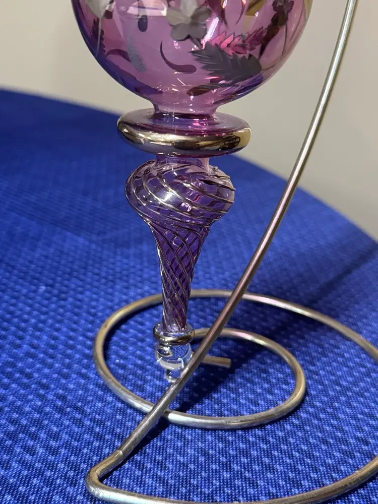 Enhance your home decor with this elegant purple glass ornament. Its intricate design adds a touch of sophistication to any space. Kurt Adler Rose & Gold Hand Blown Glass Christmas Ornament 7.5” tall Excellent like new condition in original box No breaks or chips (101192325K170)