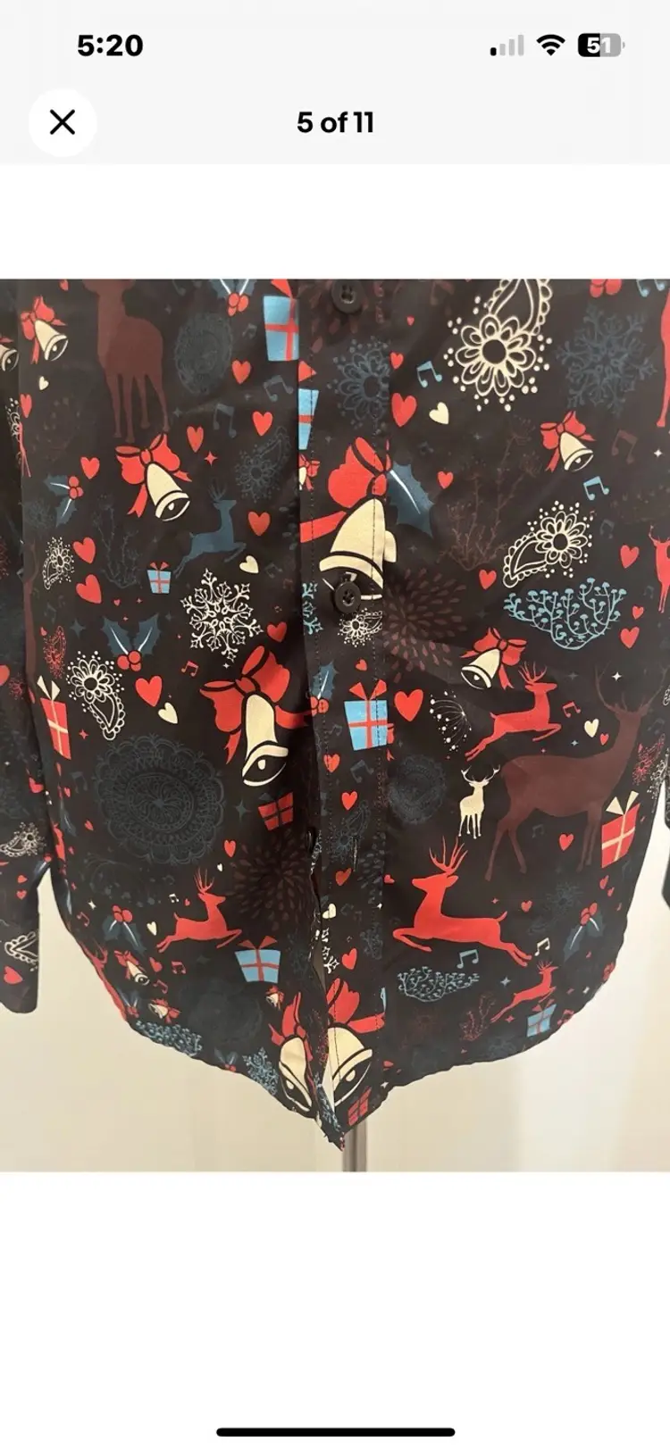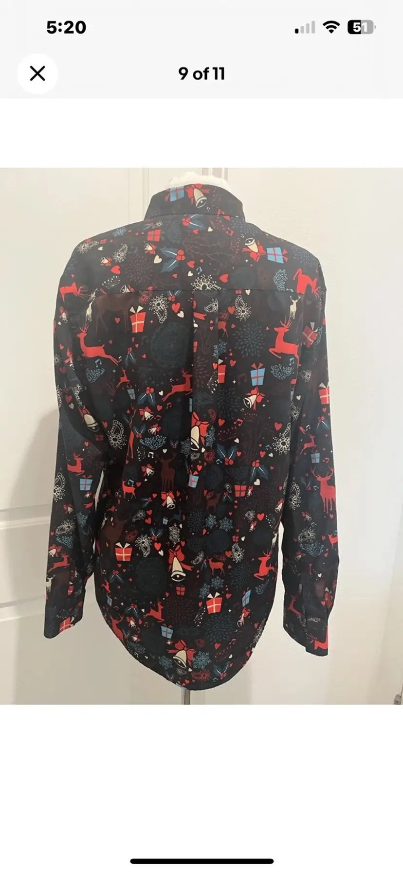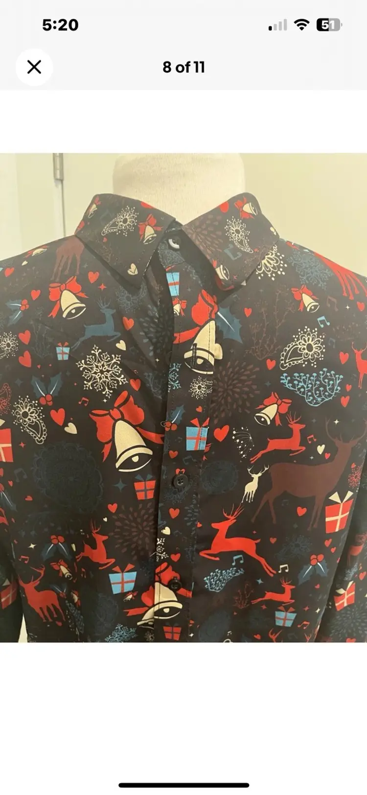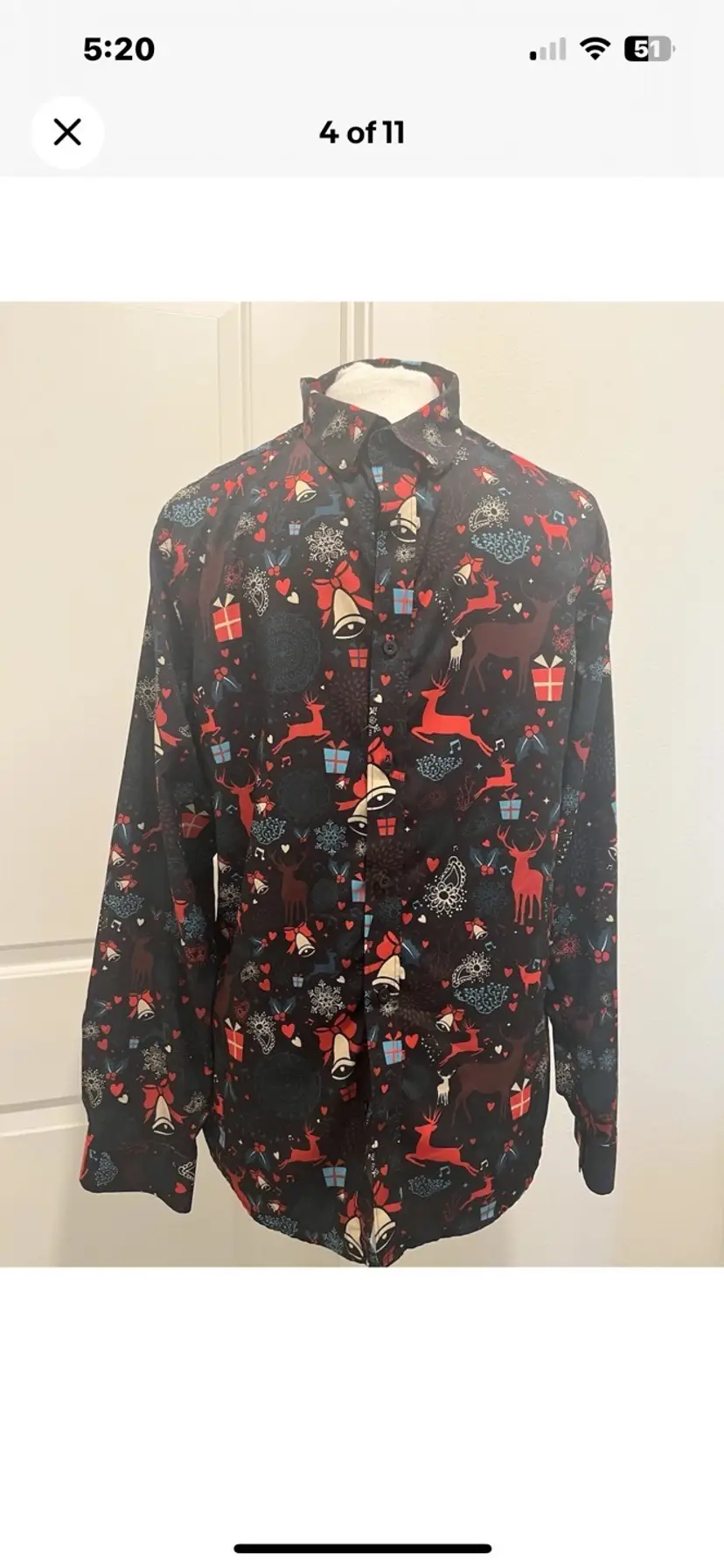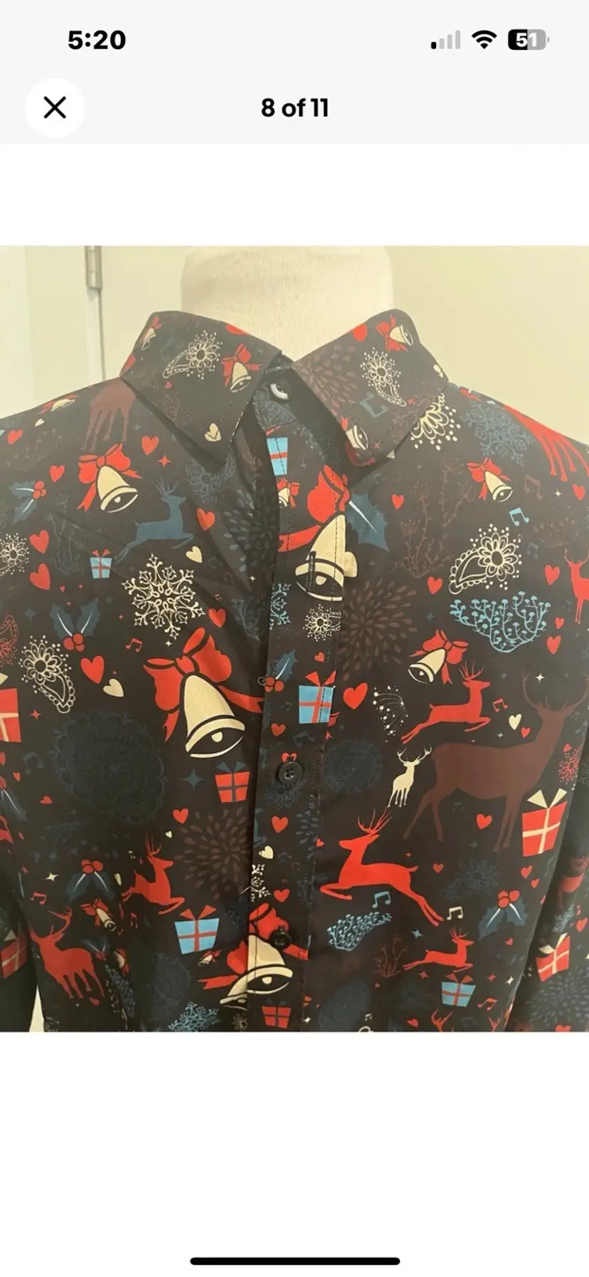 New without tags, polyester machine washable, button front, shirt is cute and playful. Kuulee Men's Ugly Christmas Shirt Long Sleeves Size Medium Button Up Novelty Newchest: 42"length 29"shoulders across back: 18"sleeves: 25"