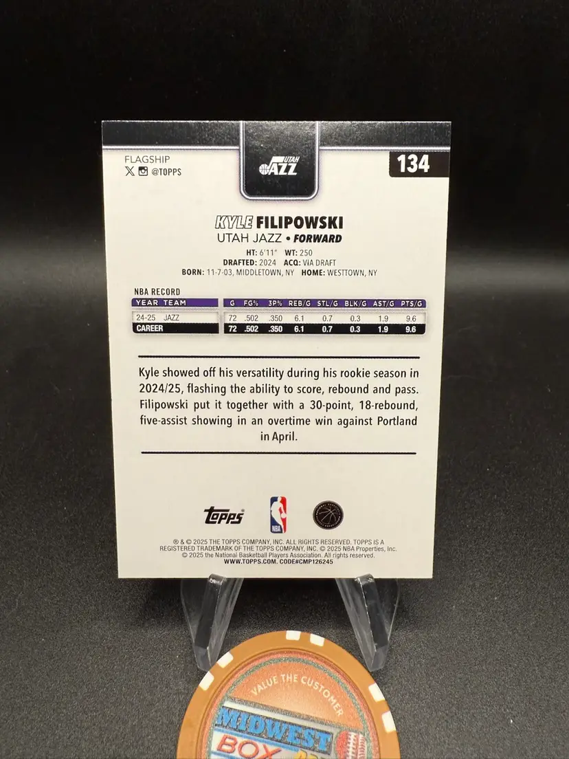 This is a Kyle Filipowski Team Border parallel from Topps 25-26 NBA product. Utah Jazz.