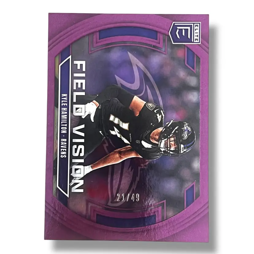 Here We Have a Kyle Hamilton 2025 Donruss Elite Field Vision Purple Color Match 21/49