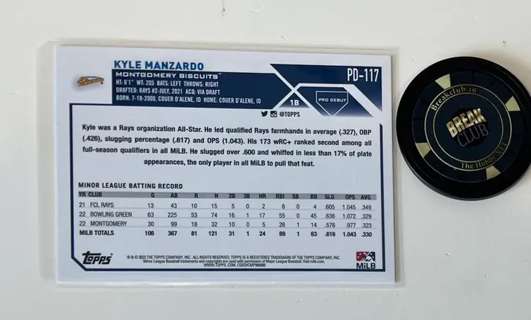 2023 Topps Pro Debut. Card features Tampa Bay Rays minor league uniform but has been traded to Cleveland Guardians. $1 shipping via PWE (stacks with other listings)