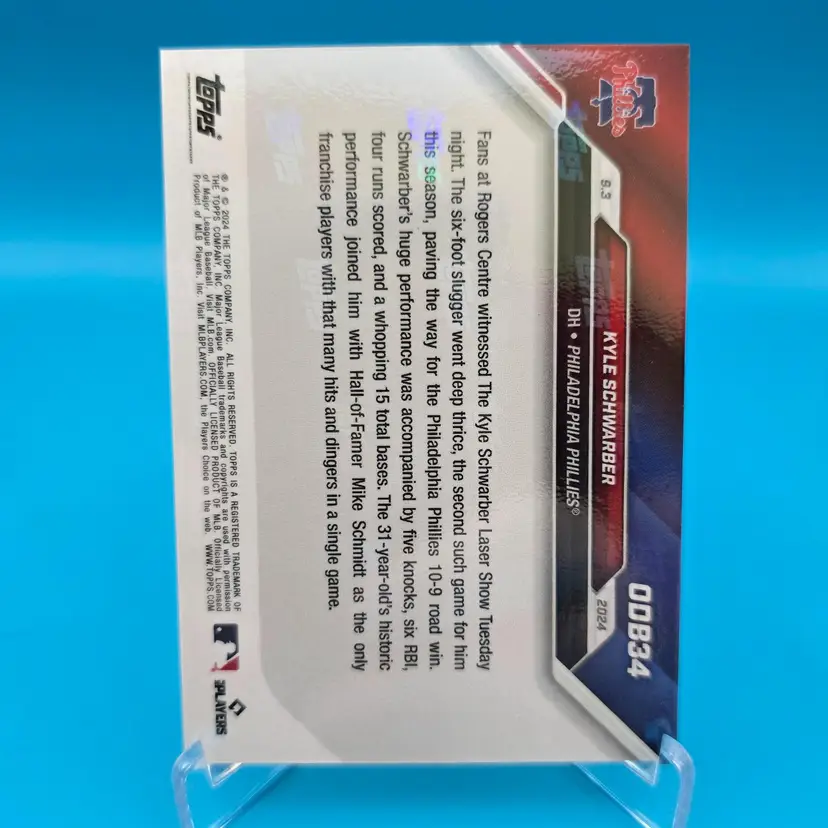 2024 Topps Now Road to Opening Day bonus card for Kyle Schwarber 3-HR game September 3. PR: 888. NM or better condition. Shipped PWE.