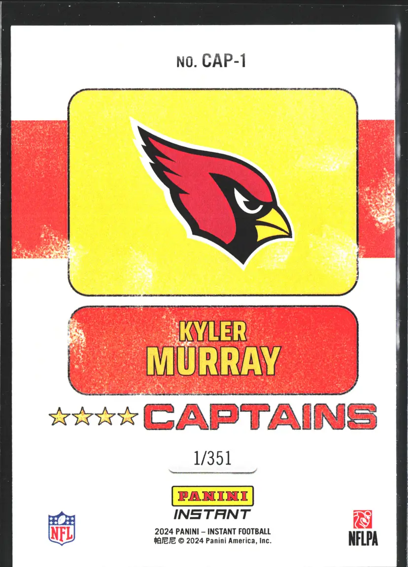 1st time buyer? Get $5 Off with code DISTRICT5 at checkout! Card as shown. All cards $20 and under ship PWE via lettertrackpro [https://www.letter-track.com/registerap.asp?AFID=8757] League: National Football League (NFL) Team: Arizona Cardinals Manufacturer: Panini Type: Sports Trading Card Player/Athlete: Kyler Murray Sport: Football Set: 2024 Panini Instant NFL Features: Limited Edition, Serial Numbered Season: 2024 Parallel/Variety: Limited Autographed: No Year Manufactured: 2024 Vintage: No Graded: No Material: Card Stock Original/Licensed Reprint: Original Country/Region of Manufacture: United States