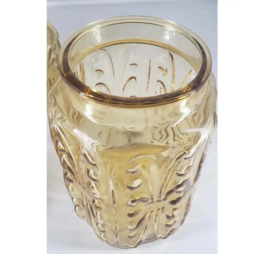 L. E. Smith Imperial Amber Glass Atterbury Scroll Canister Set Of 2