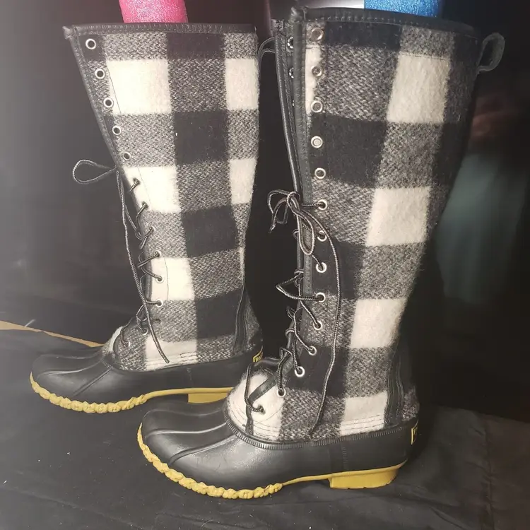 Pattern: Plaid Toe Shape: Round Toe Character: LL Bean Signature Boots Closure: Lace Up US Shoe Size: 7 Color: Black MPN: does not apply Fabric Type: Wool Vintage: No Brand: L.L. Bean Department: Women Type: Boot Customized: No Model: Bean Style: Snow Boot Theme: Duck Shoe Width: M Season: Fall, Spring, Winter Upper Material: Wool Country/Region of Manufacture: United States Product Line: L.L.Bean Bean Boots