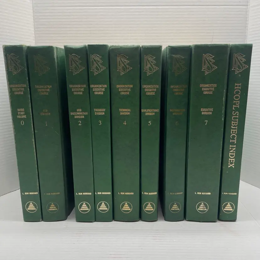 You are purchasing a L. Ron Hubbard Organization Executive Course 9 Volume set of Scientology Management, it is the compete set. The books do have Minor discoloration to the pages and some have minor flaws but otherwise are in good condition!