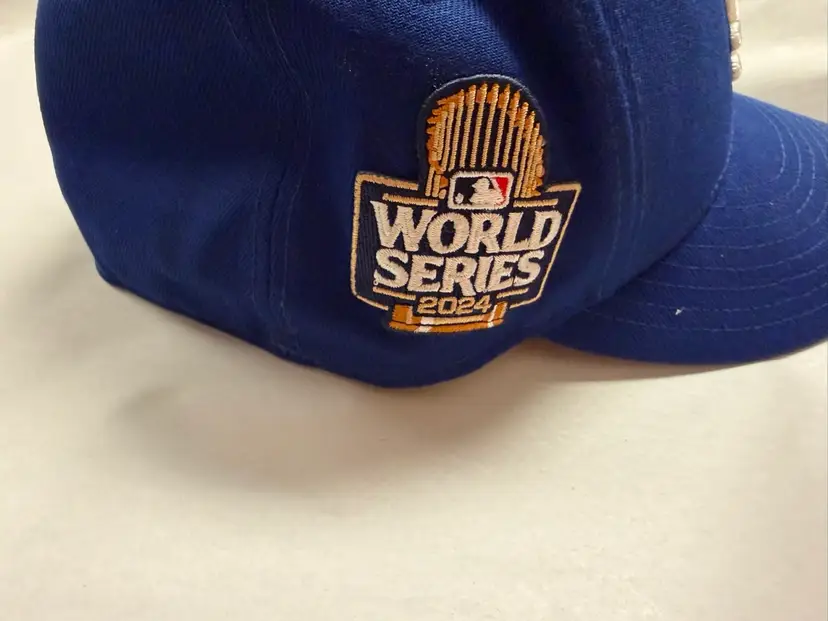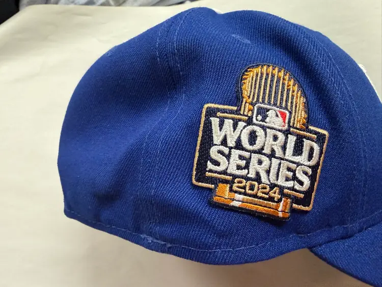 LA Dodgers New Era Blue 2024 World Series Patch 7 5/8 Error Hat Cap. Patch is not seen on straight