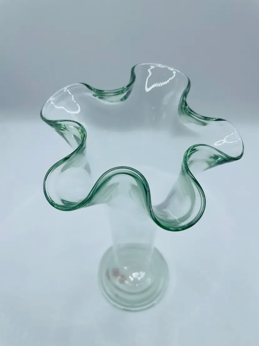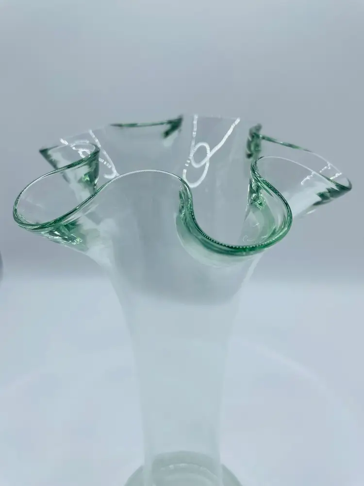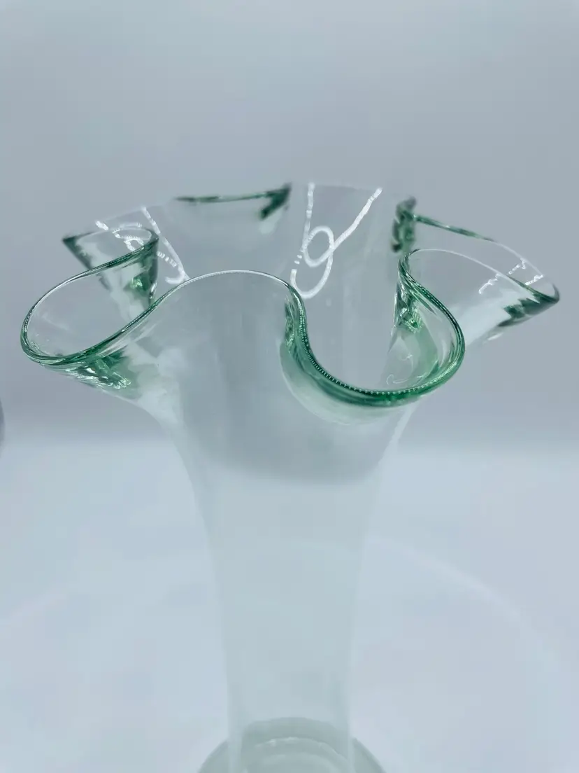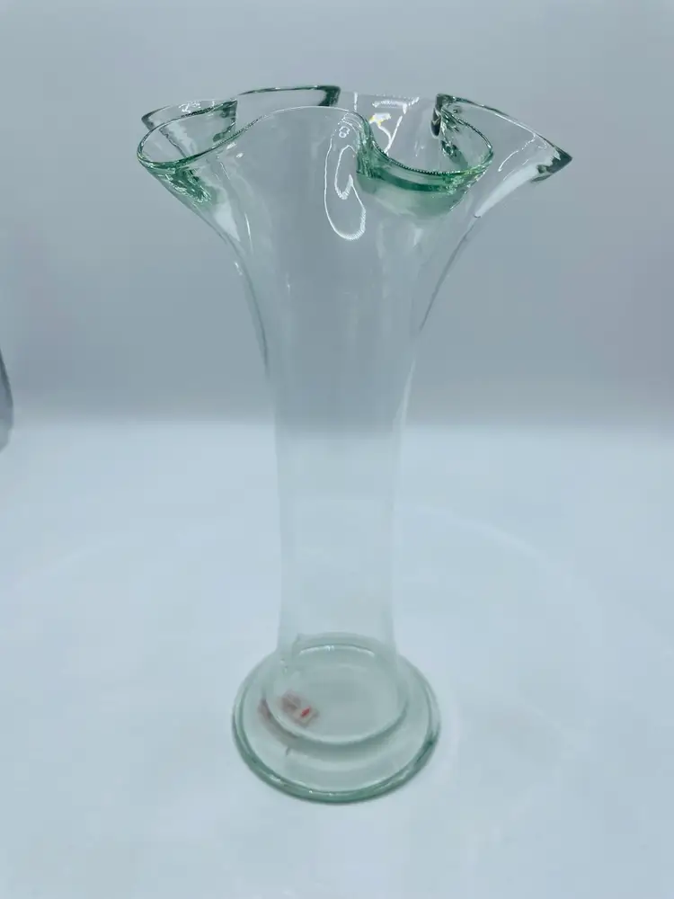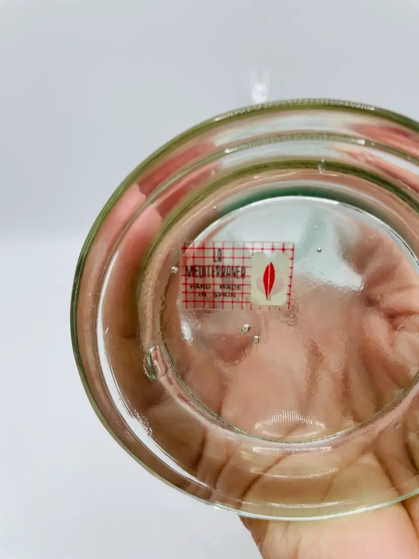 La Mediterranea, a line of table top items made from 100% recycled glass. La Mediterranea converts 5 million kilos (11 million pounds!) of glass each year salvaged from Spain’s urban recycling bins into glasses, goblets, vases, plates, and more in a dozen patterns and 15 delightful hues. Designed and crafted in Valencia, Spain since 1975, the process combines computerized manufacturing with artisan glassblowing techniques. Please see pictures for measurements.