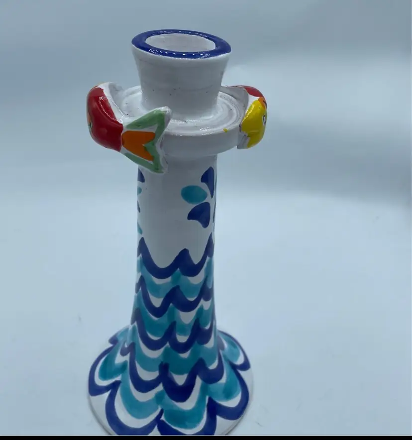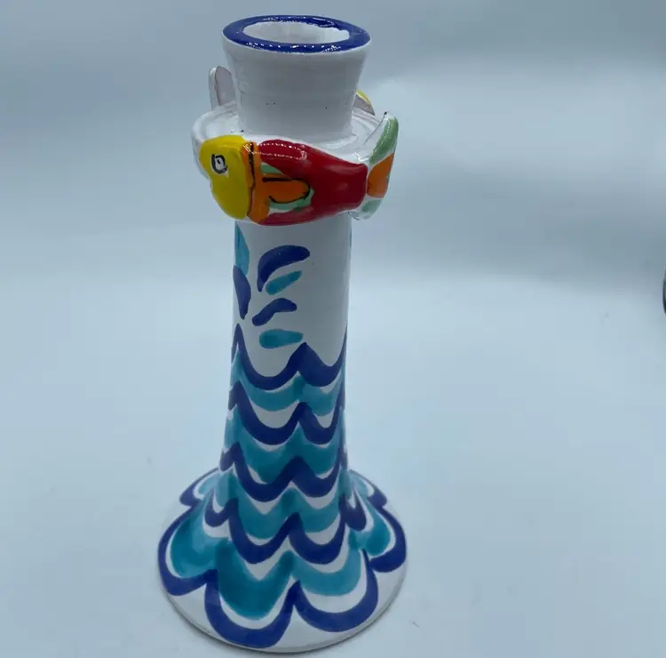 La Musa MCM Italian pottery fish candle stick holder. No chips or cracks. 8” tall
