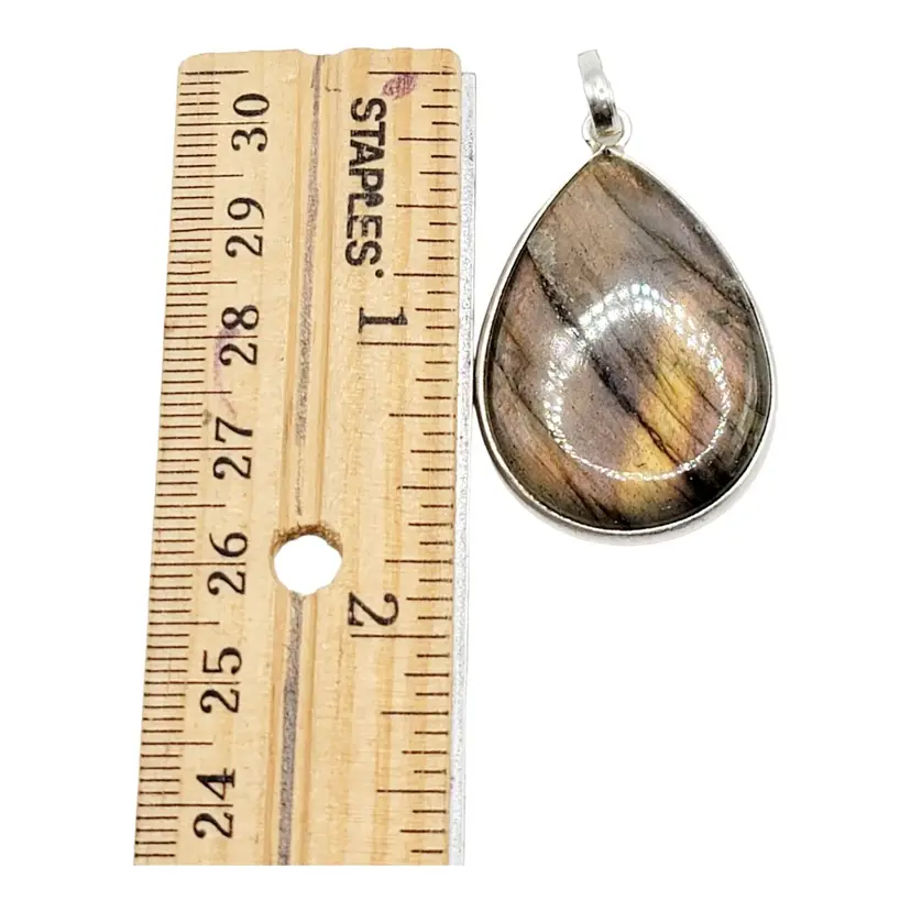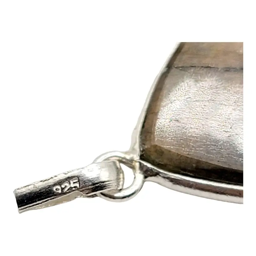 – Number of Diamonds: 0 – Pendant Shape: Oval – Pendant Length: 1.75" – Closure: Loop – Occasion: Christmas/Valentine's Day/Anniversary, Birthday, Engagement, Graduation, Mother's Day, Valentine's Day – Length (inches): 1.85" – Main Stone Color: Brown – Metal: Sterling Silver – Secondary Stone: Not Applicable – Necklace Length: 1.75" – Main Stone: Labradorite – Main Stone Treatment: Not Enhanced – Singed: Yes – Main Stone Shape: As Seen As Picture – Pendant/Locket Type: Loop – Base Metal: Silver – Style: Pendant – Features: Loop – Number of Gemstones: 1 – Handmade: Yes – Main Stone Creation: Natural – Color: Brown – Material: Stone – Total Carat Weight: Unknown – Certification: No – Modified Item: No – Diamond Clarity Grade: Not Applicable – Setting Style: Channel-Set – Brand: Unbranded – Type: Pendant – Metal Purity: 925 – Fastening: Loop – Era: Undated – Length: 1.85" – Colored Diamond Intensity: Not Applicable – Diamond Color Grade: Not Applicable – Theme: Beauty – Wholesale: Yes