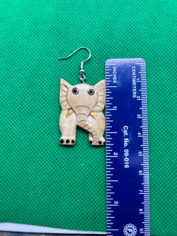 These cuties are vintage very lightweight elephant earrings probably made of balsa wood, lacquered, then hand painted. I replaced the hooks with new ones because the old ones were in poor shape. Please see photos as they are part of the description. Thank you for looking.