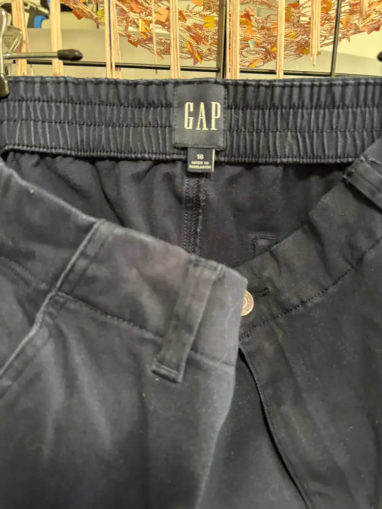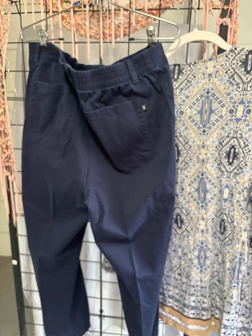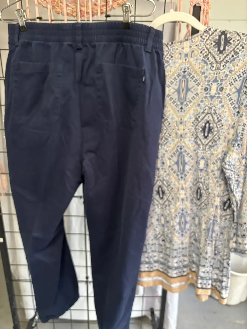 This 2 piece ensemble features like new light weight navy bohemian print XL long sleeve top and navy GAP ladies sz 16 pants. Pants have an elastic waist, with zipper front & includes pockets in front and back.