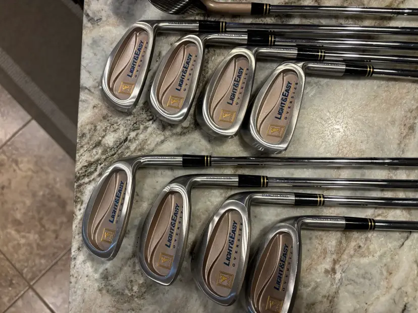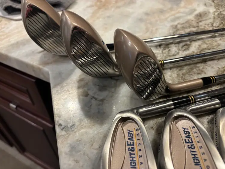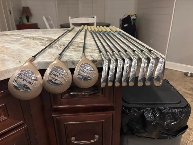 Ladies, complete golf club set square two light and easy oversize. Built for beginner, golfers, and high handicappers to easily get the ball off the ground and keep it straight.4-sw and 1,3,5 woods