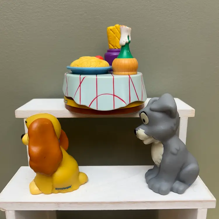 Disney’s Lady & The Tramp Fisher Price Little People hard to find complete set from 2012. Includes; lady (dog figure), tramp (dog figure) and the spaghetti table. Gently played with figures but in excellent collector condition. See pictures for each items specific condition. Combined shipping is on & I am always open to offers or bundles on multiple items!