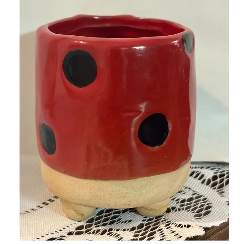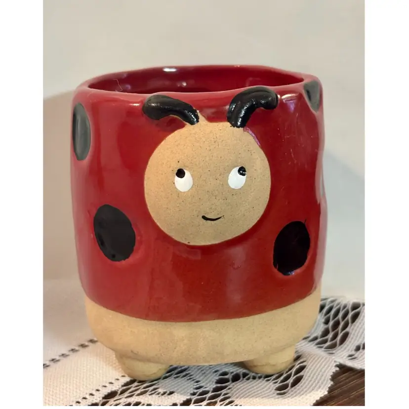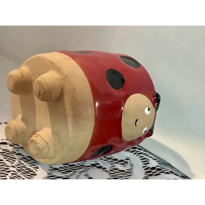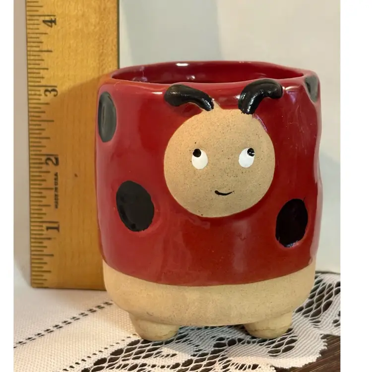 Ladybug Red Plant Flower Pot Ceramic Semi Glazed Ladybeetle Planter No chips or cracks!