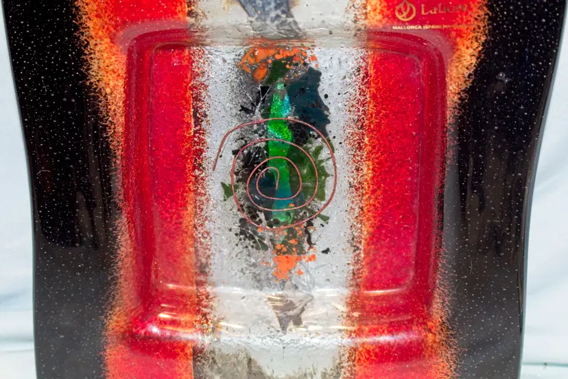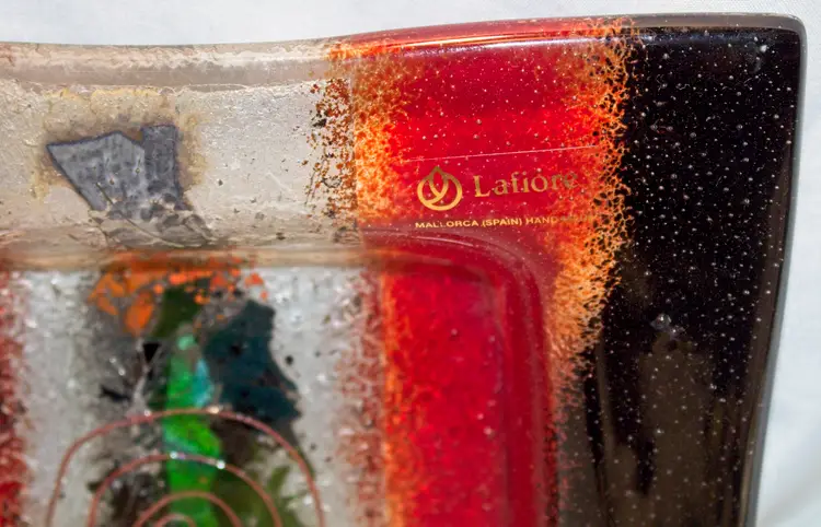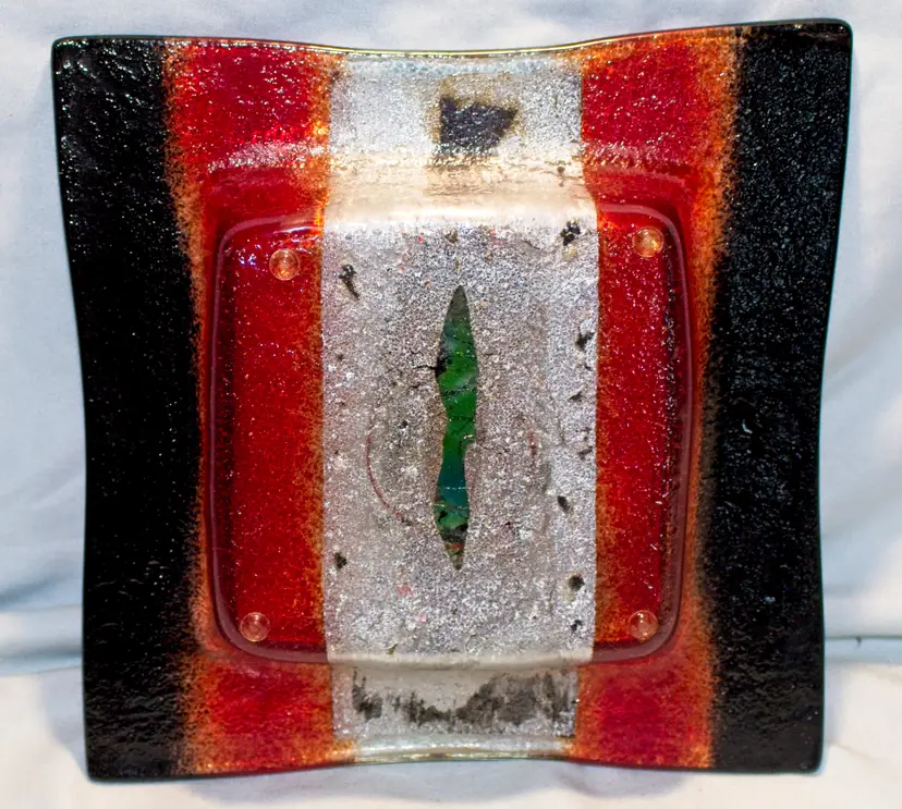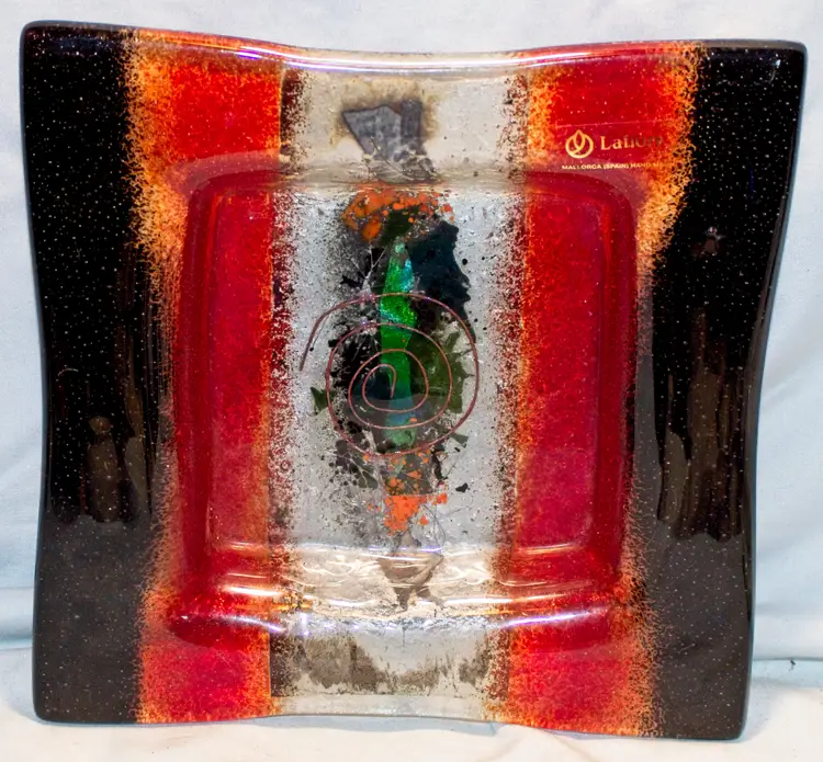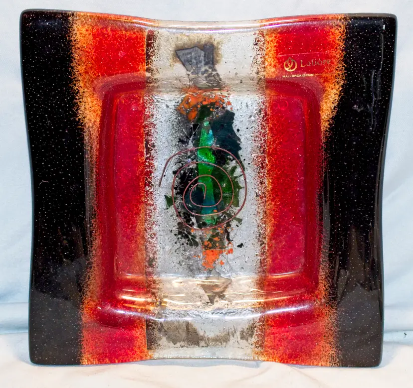 Lafiore Spain Hand Made Art Glass Square Bowl 8.25". In good condition. 8.25" square x 1.25" tall