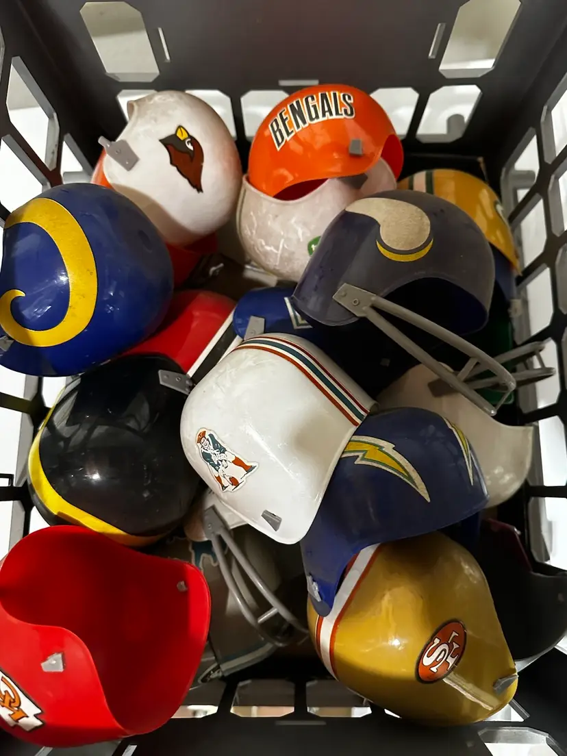 Most of the helmets’ face guards are missing or broken. Some of them are still attached but might break off during shipping because, based upon the way they were originally stored, the face guards became very brittle.