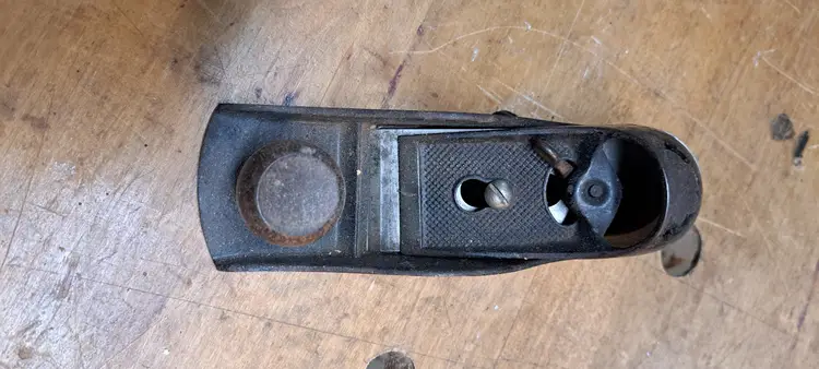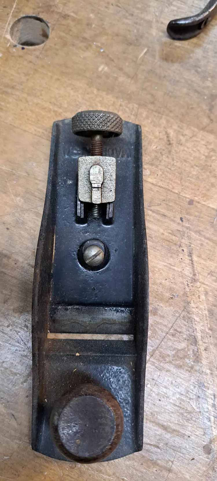 Lakeside Block Plane, made by Stanley for Montgomery Wards. Lakeside was MG's 2nd line, Words Master was the top of the line. these make good users since they are just a rebranded stanley. Some numbskull drilled a hang hole in the heal, I hate when people do that!