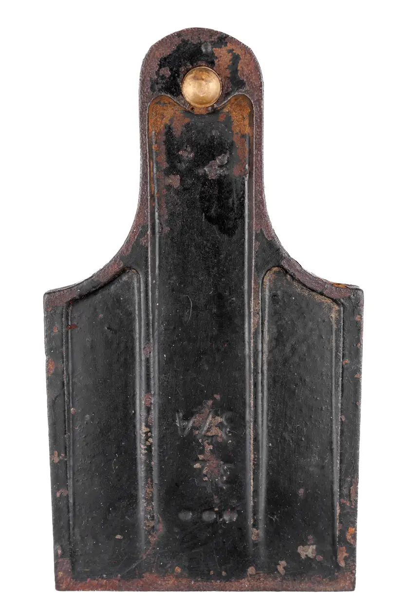 A Good Plus screw cap (lever cap) for the larger Lakeside (union) transitional planes. It is for use on transitional planes that have a 2-5/8" wide iron, although as with most plane makers and sizes, it is 1/16" short of 2-5/8" wide. It has minimal wear and no damage. It has 32 and 37A cast into the recess on the back.