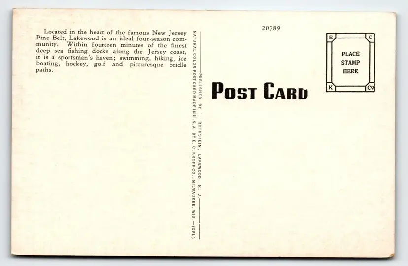Number of Items in Set: 1 Unit of Sale: Single Unit Size: Standard (5.5 x 3.5 in) Custom Bundle: No Year Manufactured: 1948 Material: Paper City: Lakewood Original/Licensed Reprint: Original Brand/Publisher: EC Kropp Subject: Post Office Continent: North America Type: Linen Postcard Era: Linen (1930-1945) Region: New Jersey Country: USA Theme: Architecture, Art, Buildings, Greetings, Post Office Features: Vintage Time Period Manufactured: 1900-1919 Country/Region of Manufacture: United States Postage Condition: Unposted