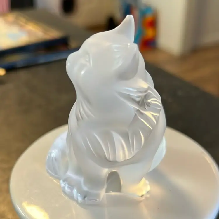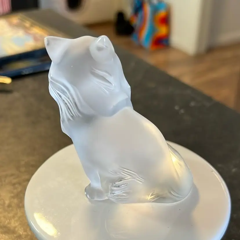 LALIQUE Heggie Seated Cat Frosted Crystal Sitting Figure Paperweight Kitten , no box, no cracks