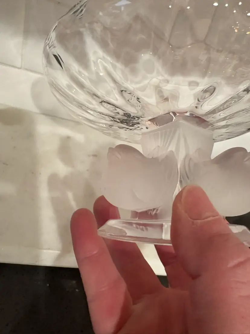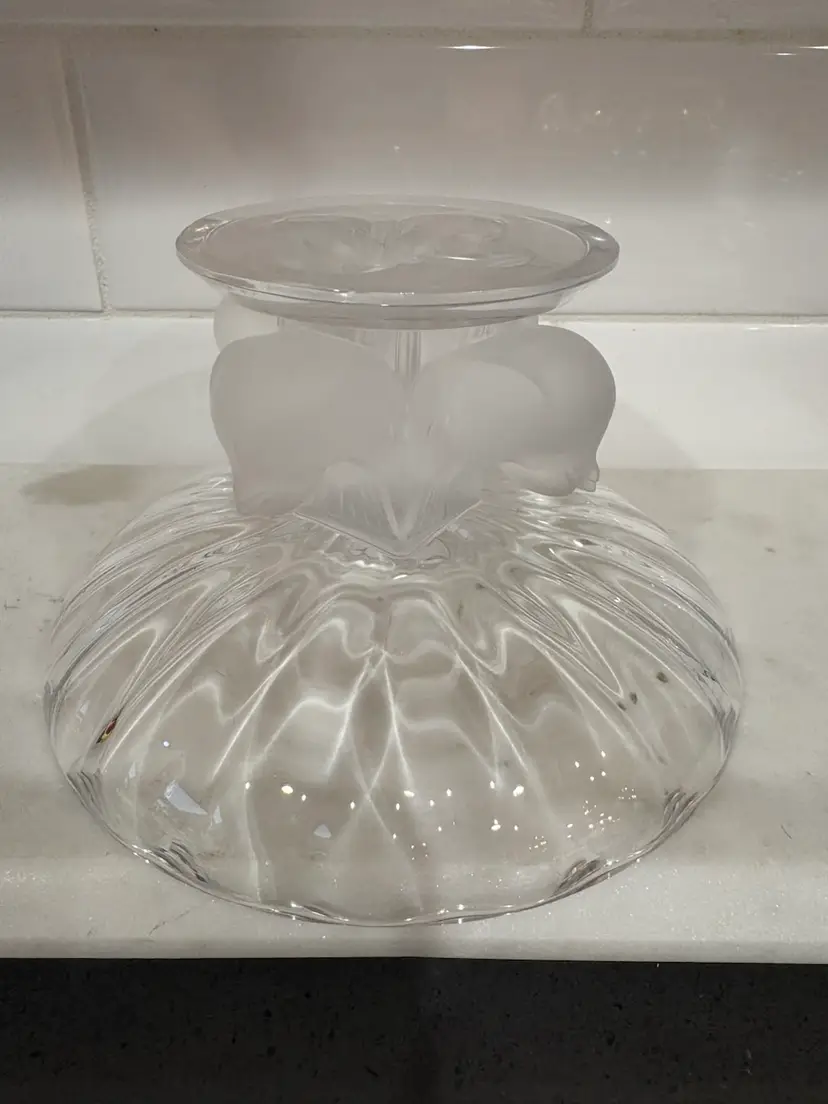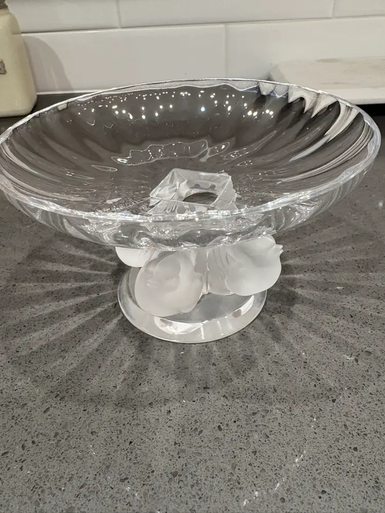 LALIQUE Crystal 'Nogent' Sparrow Birds Pedestal Compote/Candy Dish