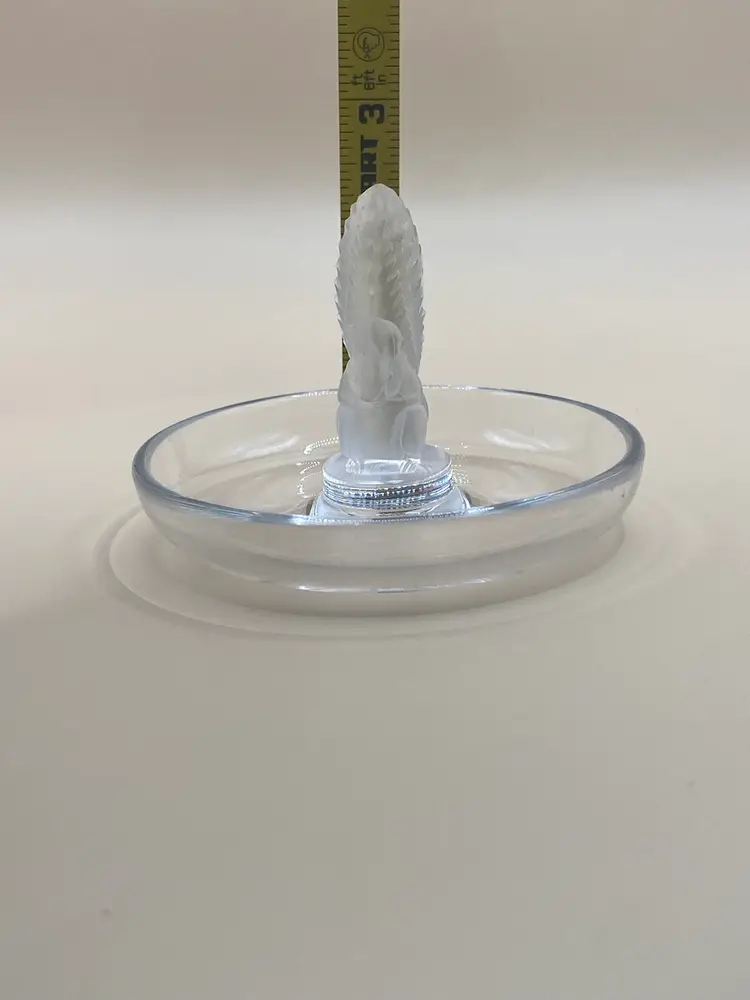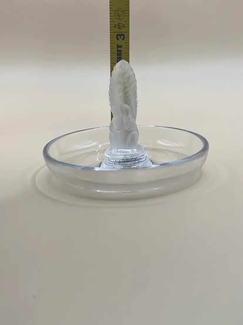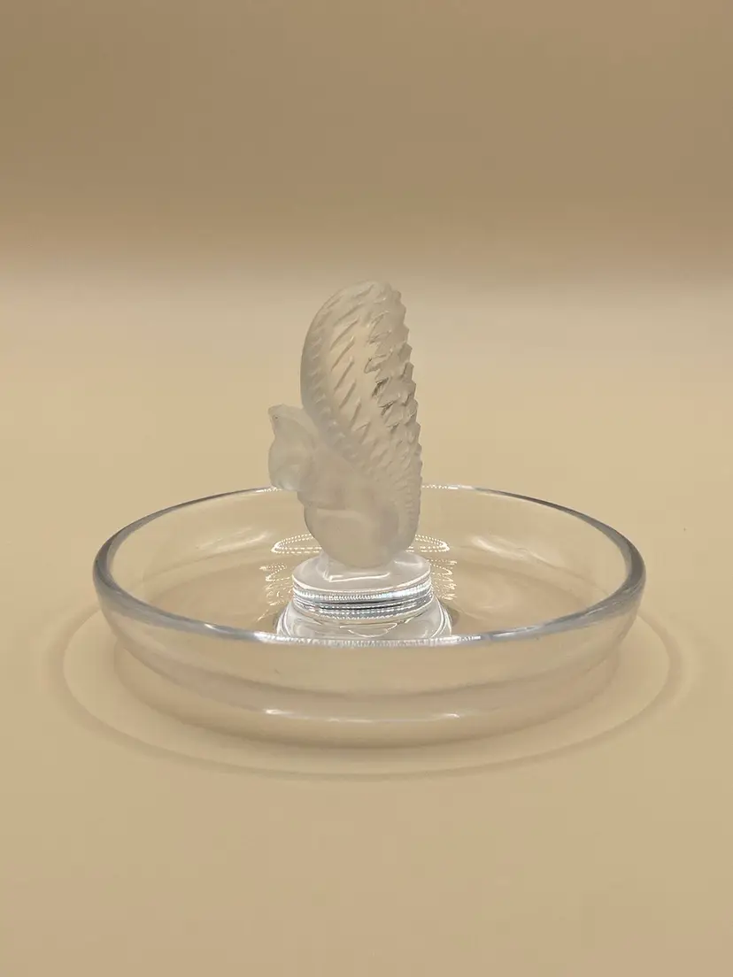 This Lalique dish has a cute little squirrel in the center. With its fluffy tail and all the details it is a fantastic piece. It has no chips, cracks, repairs or nicks. Very little signs of wear, and in great condition.