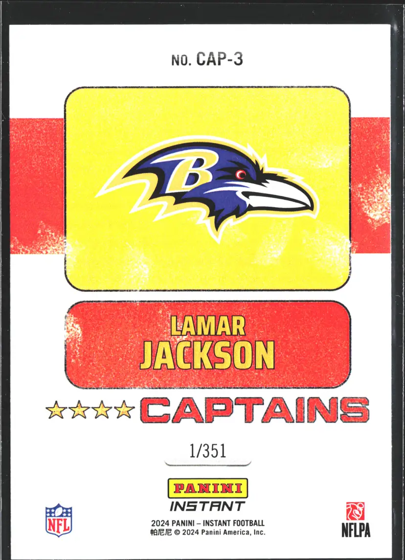 1st time buyer? Get $5 Off with code DISTRICT5 at checkout! Card as shown. All cards $20 and under ship PWE via lettertrackpro [https://www.letter-track.com/registerap.asp?AFID=8757] Type: Sports Trading Card Manufacturer: Panini Team: Baltimore Ravens Season: 2024 Sport: Football Player/Athlete: Lamar Jackson League: National Football League (NFL) Features: Limited Edition, Serial Numbered Set: 2024 Panini Instant NFL Parallel/Variety: Limited Autographed: No Year Manufactured: 2024 Vintage: No Graded: No Card Condition: Near Mint or Better Material: Card Stock Original/Licensed Reprint: Original