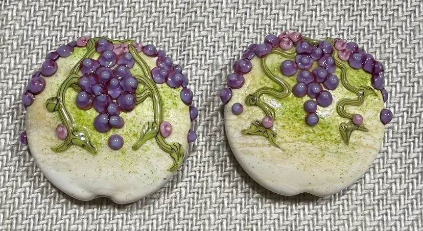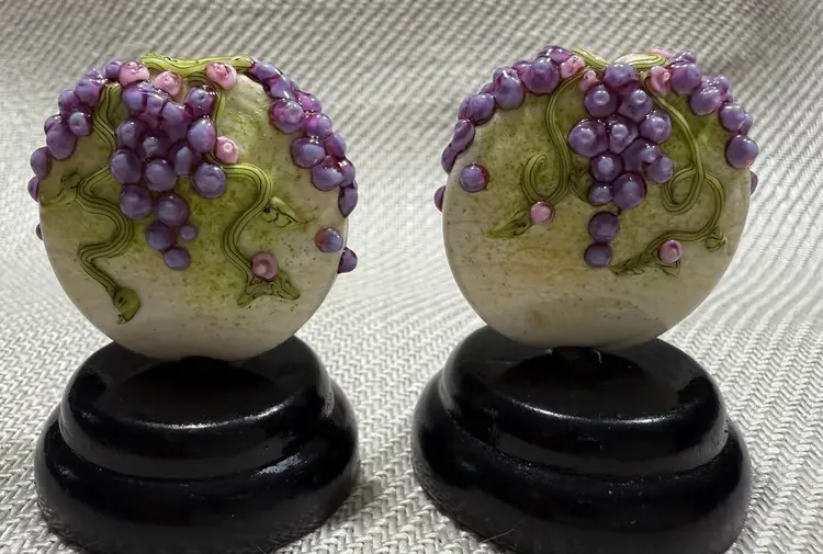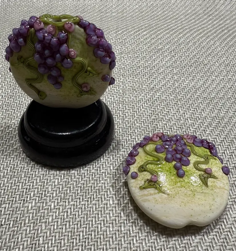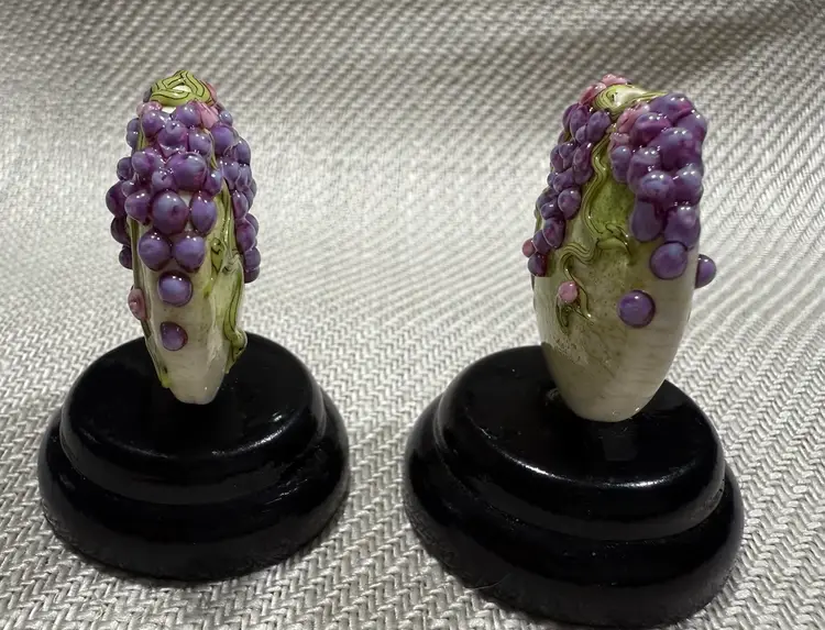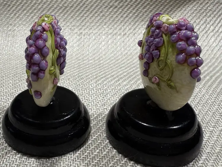 Handmade lamp work bead by Artist Laura Critchfield of Chestnut Ridge Designs 2 pieces, stands not included.