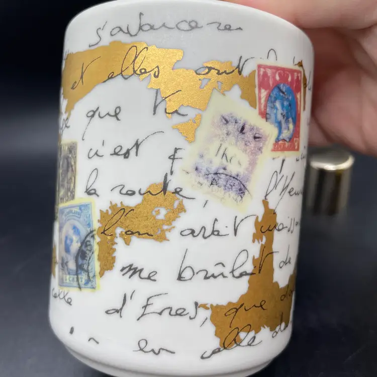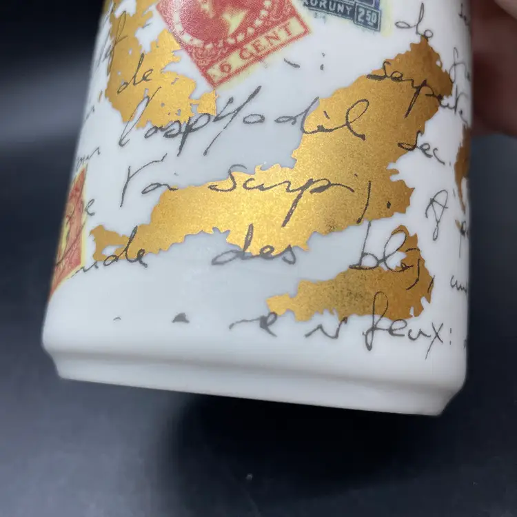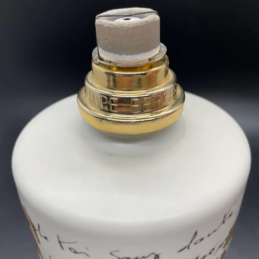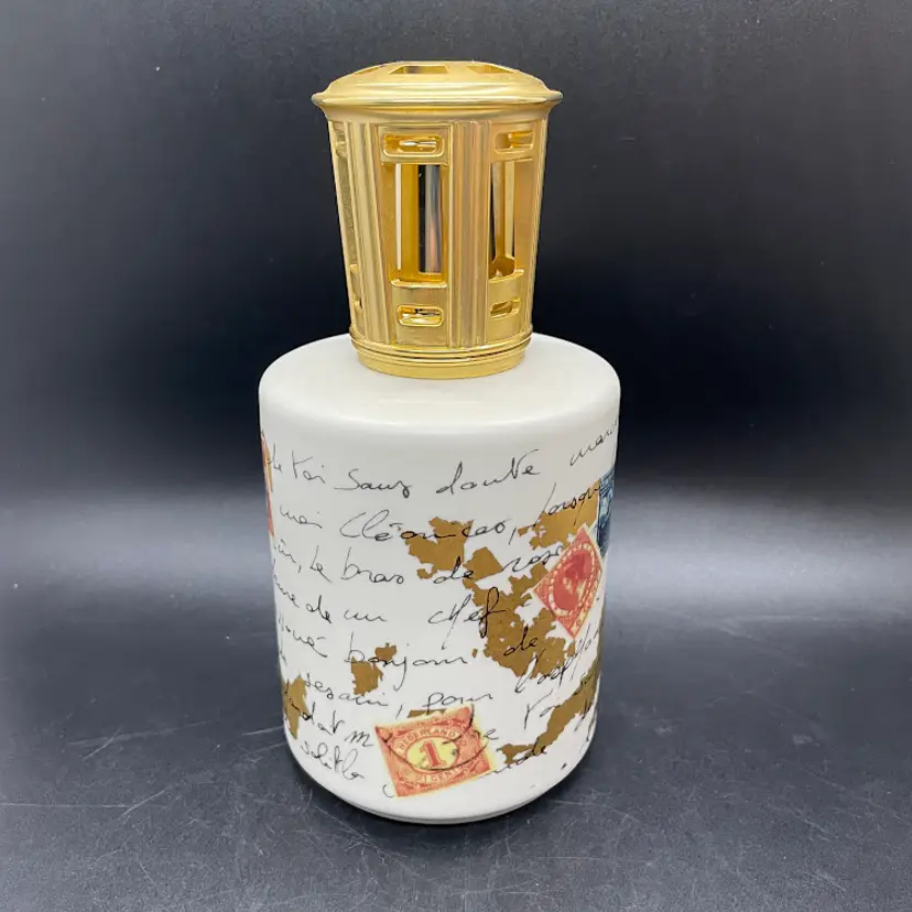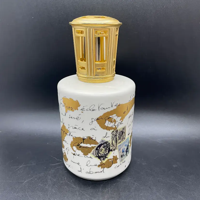 Lampe Berger Porcelain Fragrance Lamp oil Diffuser Postage Stamp Travel. Made in France.No chips or cracks. Signs of wear and use. Some crazing to the glaze. Some wear and tarnishing to the two caps. Please see pictures.