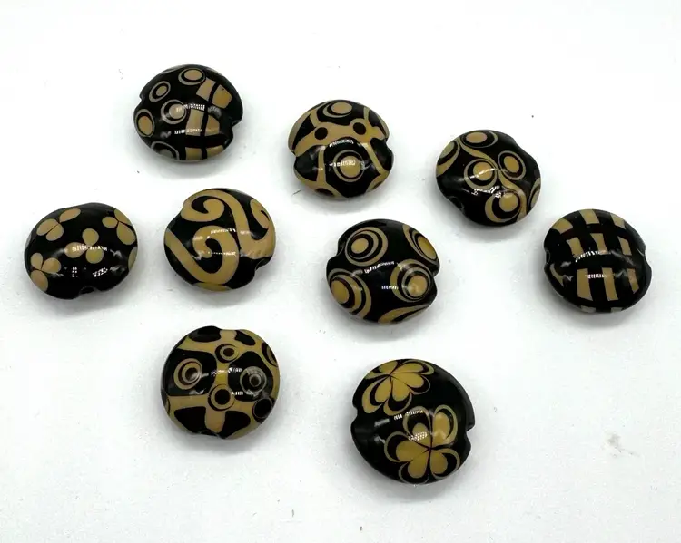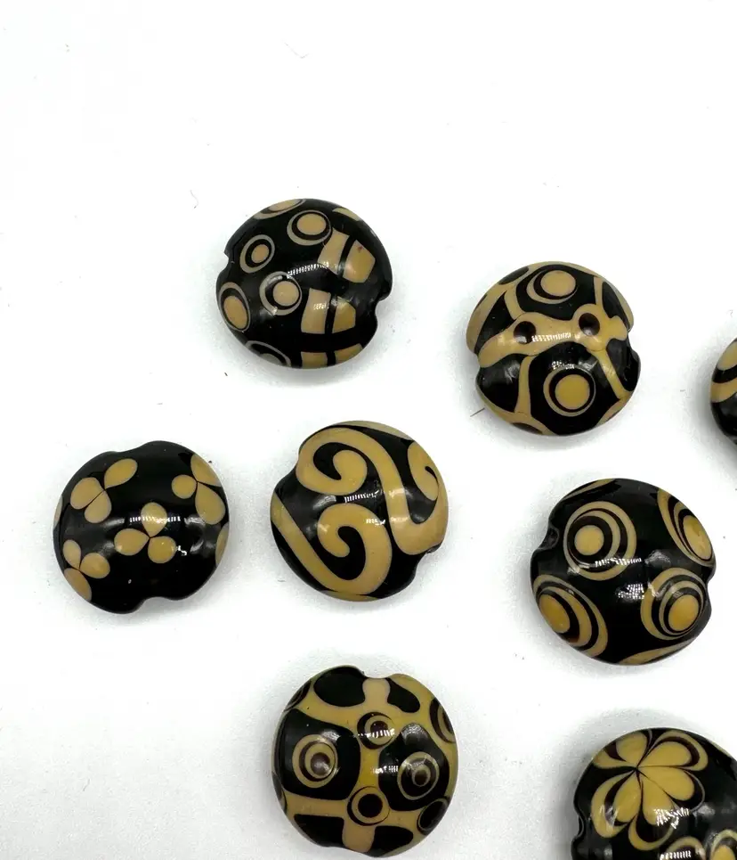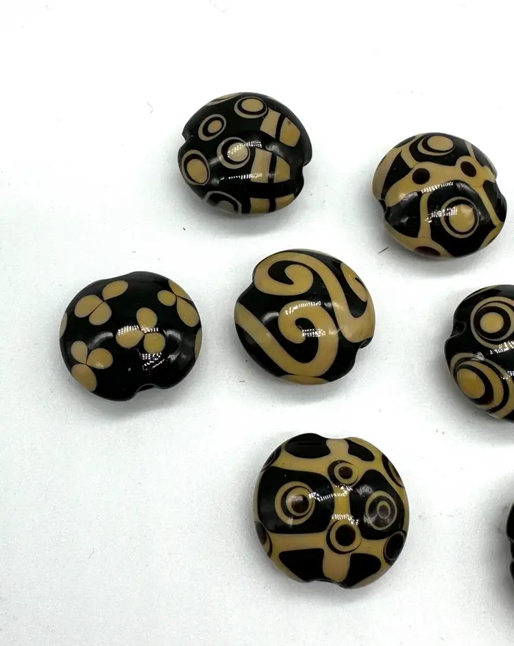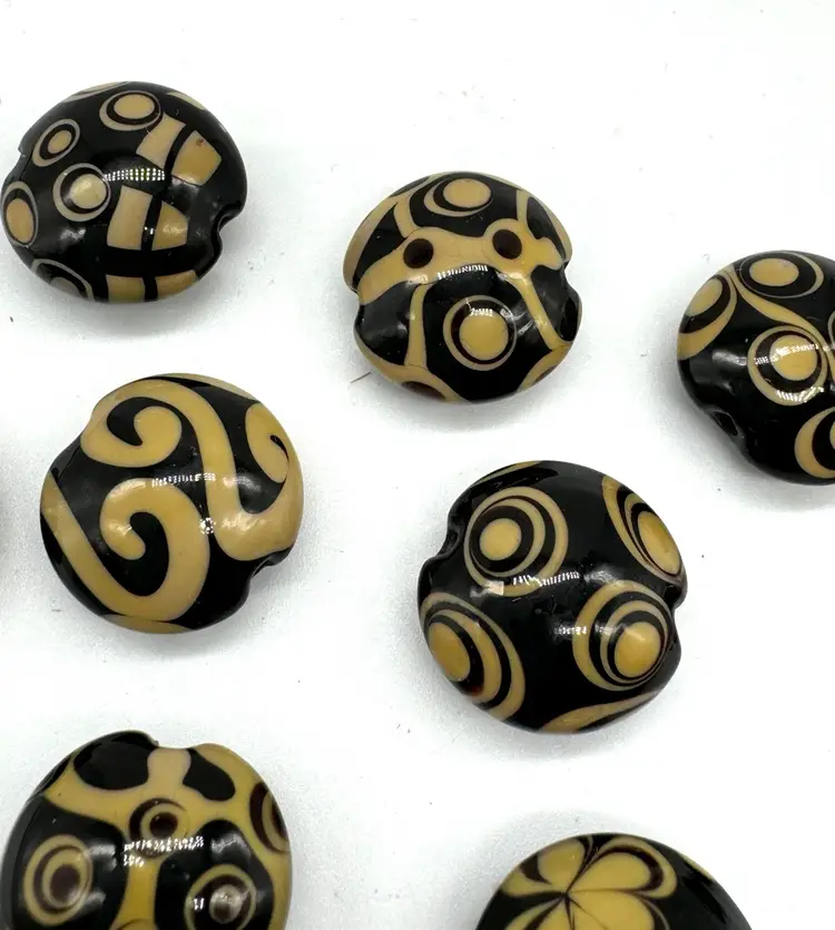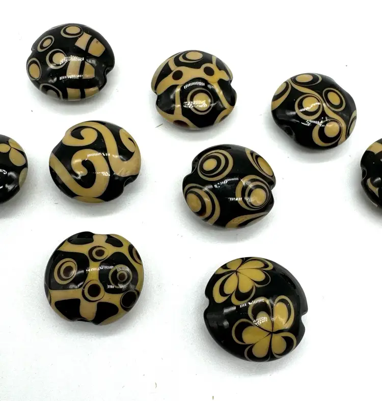 Clearing out some of my stringing supplies, these lampwork beads I purchased some years ago and are hand made. There are 9 beads, lentil shape and they measure 19mm.