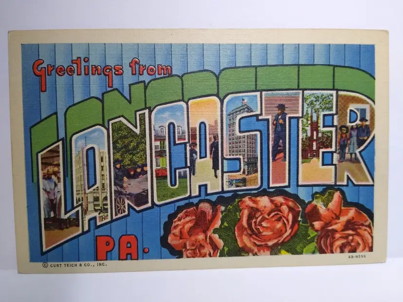 Size: Standard (5.5 x 3.5 in) Custom Bundle: No Continent: North America Region: Pennsylvania Country: USA Type: Linen Postcard Year Manufactured: 1950 Number of Items in Set: 1 Signed: No Original/Licensed Reprint: Original Occasion: Sayings & Quotes City: Lancaster Time Period Manufactured: 1930's-1950's Unit of Sale: Single Unit Era: Linen (1930-1945) Artist: Unknown Country/Region of Manufacture: United States Material: Paper Theme: Big Letter, Large Letter, Block Letters, Buildings, Architecture, Greetings Features: Large Letter Postcard, Buildings, Scenic, Greetings, Greetings From, Big Letter, Linen Postcard Subject: Large Letter Postage Condition: Unposted Brand/Publisher: Curt Teich Franchise: Unknown