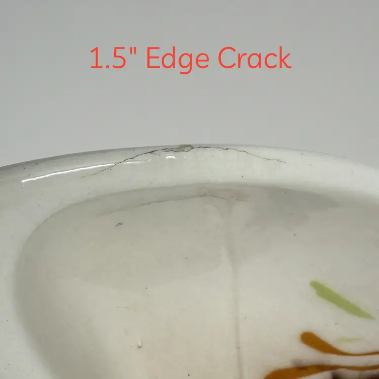 Condition reflects age honestly. There is visible crazing throughout, consistent with vintage ceramic glaze. One stable hairline crack is present along the rim. No major chips or repairs observed. Structurally sound and display-ready.