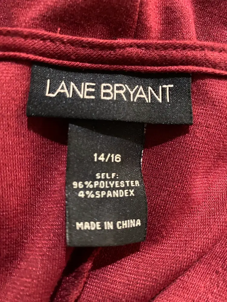 Lane Bryant Burgundy long sleeve Dress. Excellent condition. Size 14/16 96% Polyester 4% spandex. 19” Chest 43” length shoulder to hem.
