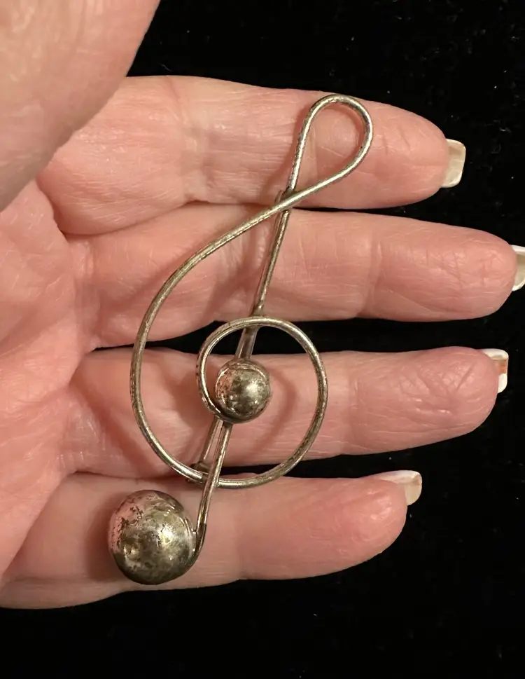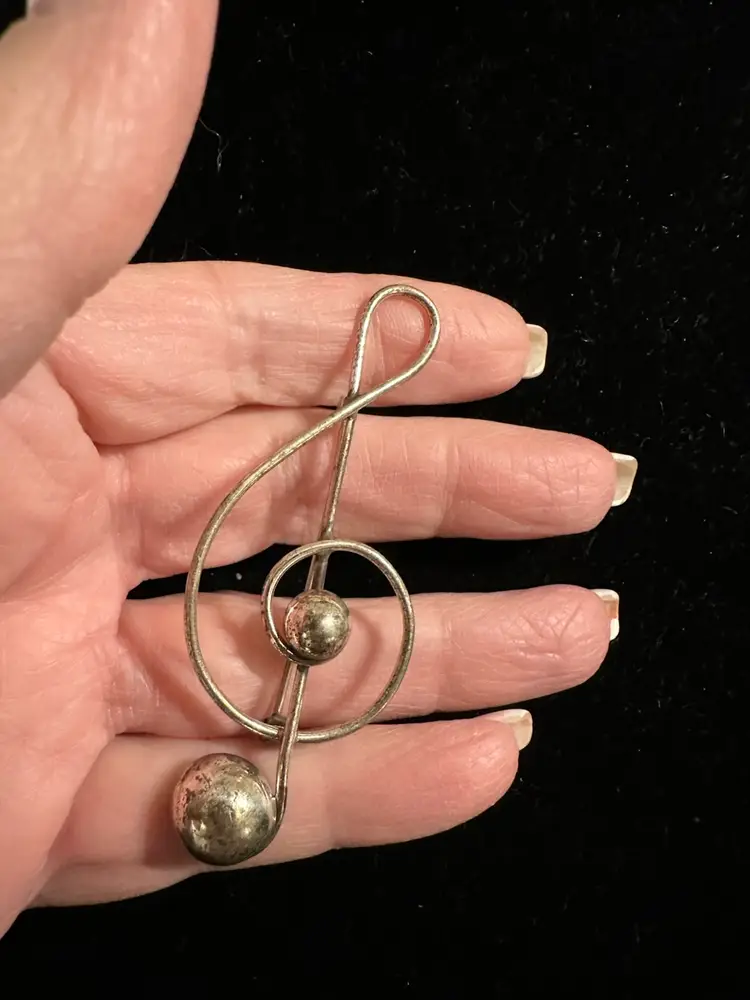Lang Sterling Silver treble clef Figural pin. It measures 2.75” x 1”. Very good condition.
