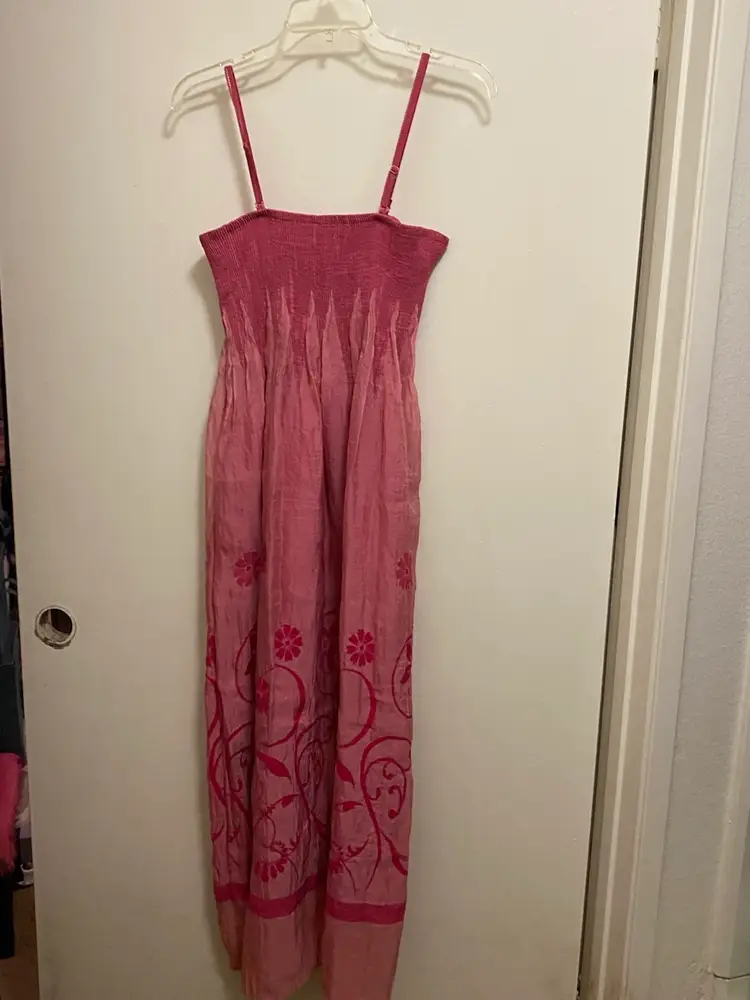 Lapis By Anthropologie Womens Maxi Dress One Size Pink Floral Vacation Great condition with no wear, fading, stains or damages Pit to pit across is 17” flat and stretchy to 21” for bust measurement of 34” to 40” Waist is 16” flat to 19” with stretch for waist measurement 32” to 38” Length 55” Shoulder straps are adjustable Polyester / Rayon / Nylon /Spandex blend fabric #beachy #resortwear #vacation #maxidress #coquette