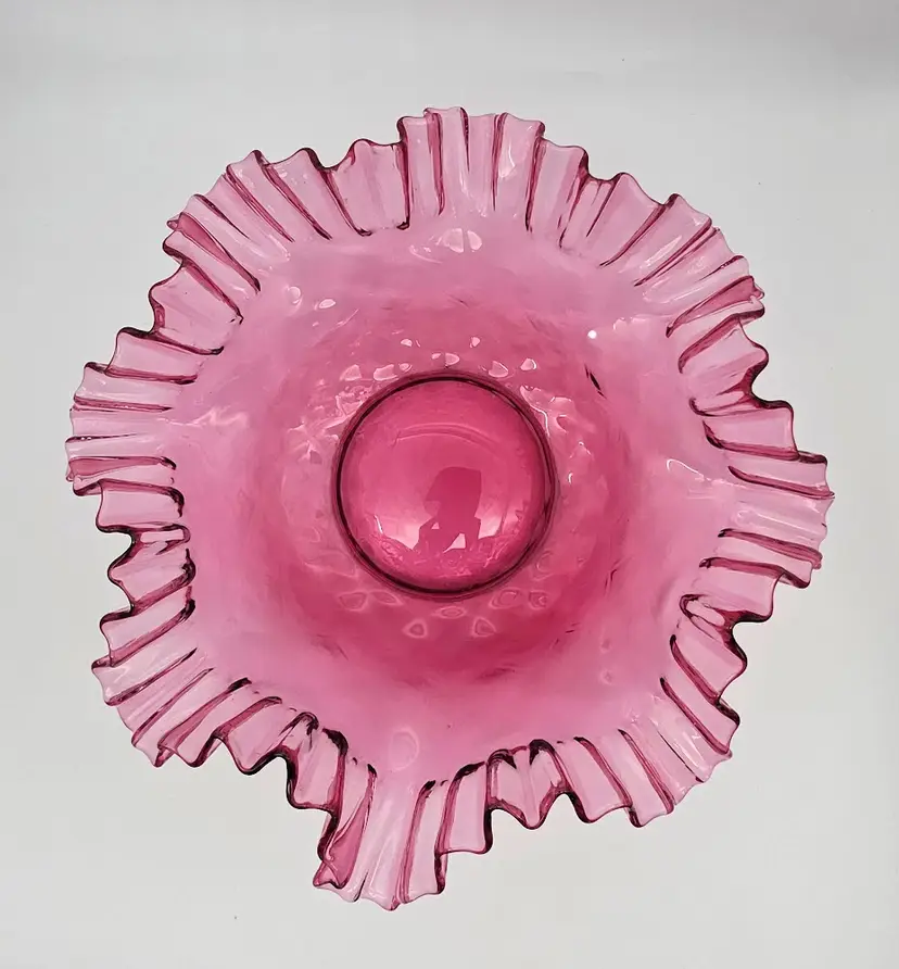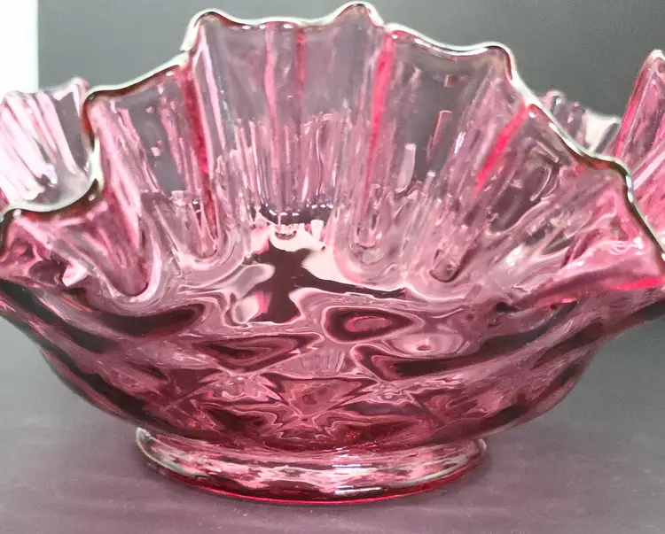 Large Fenton cranberry Diamond Optic console Bowl. Has Fenton mark.
