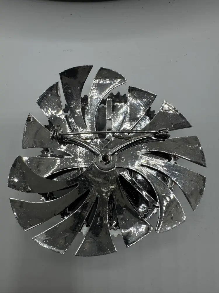 Large 1950’s Silver Tone & Aurora Borealis Rhinestone Brooch. Great vintage condition. Measures 2 1/2” X 1”
