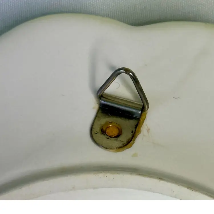 Condition: Metal hanger is not straight, the design is scattered cherries so I don’t think it matters. There is also holes to hang by a ribbon or rope.No other issues noted.