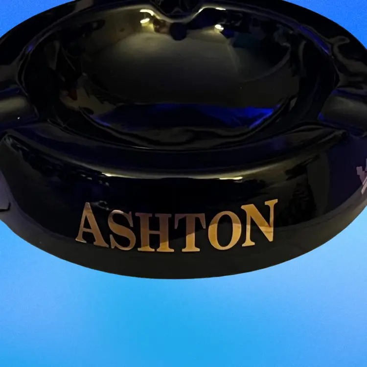 Beautiful, sophisticated black & gold ashtray. Four cigar rests.