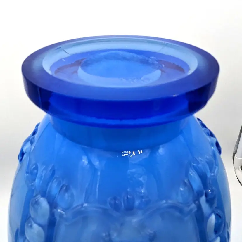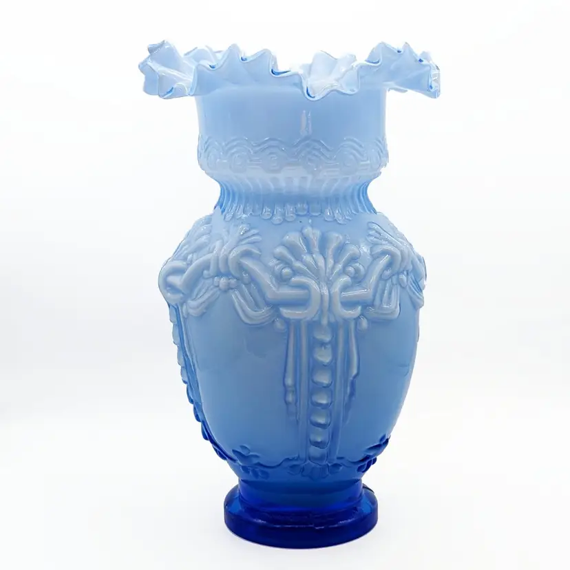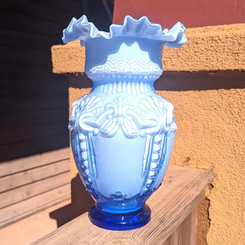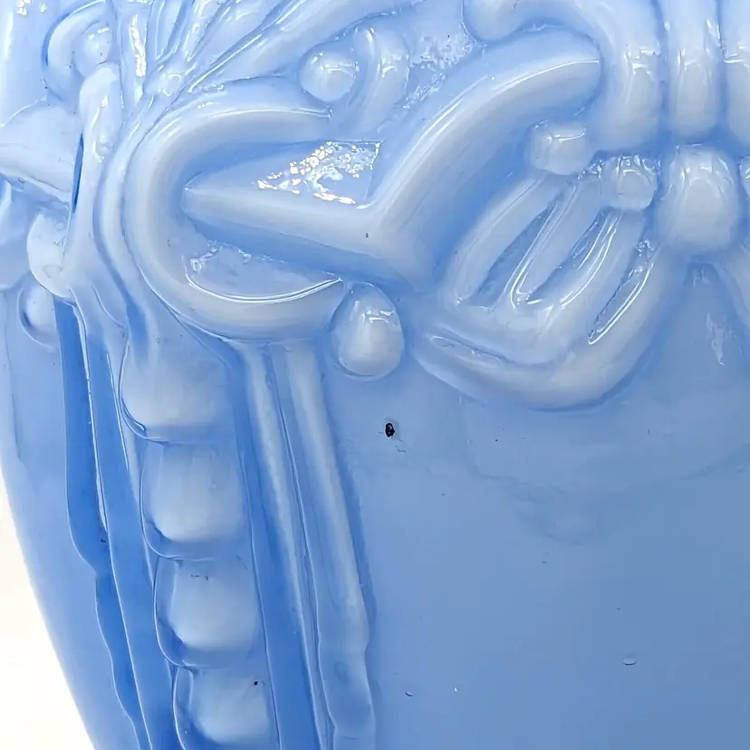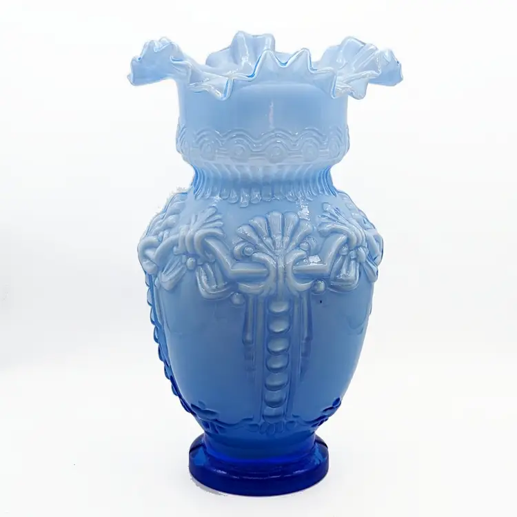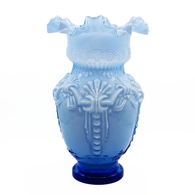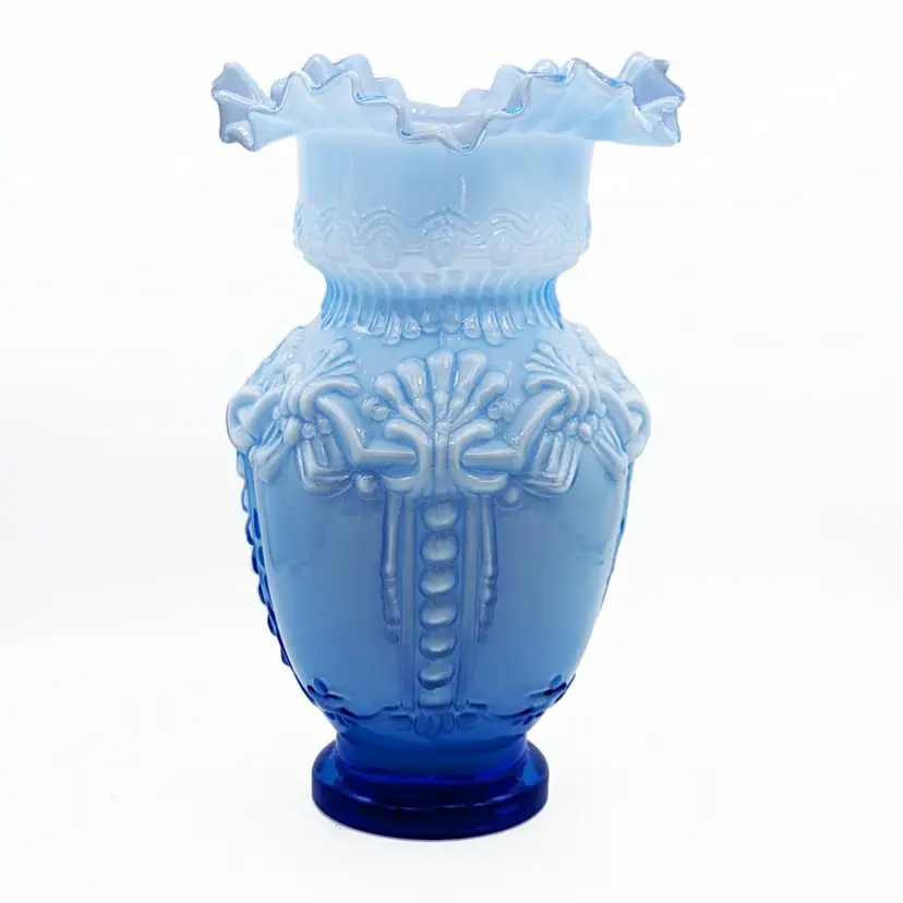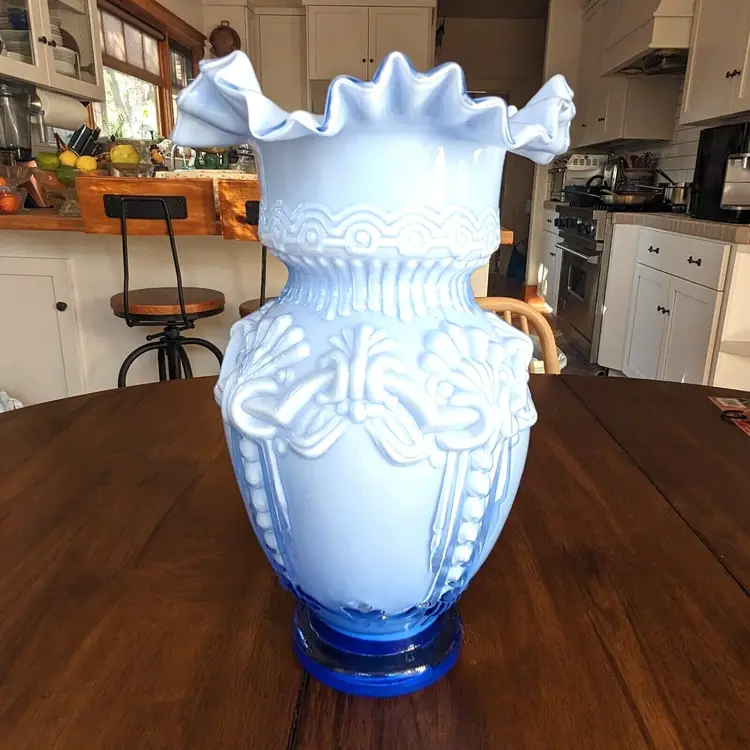 Large Blue and White Art Glass Vase Vintage Elegant Cased Glass with Bows