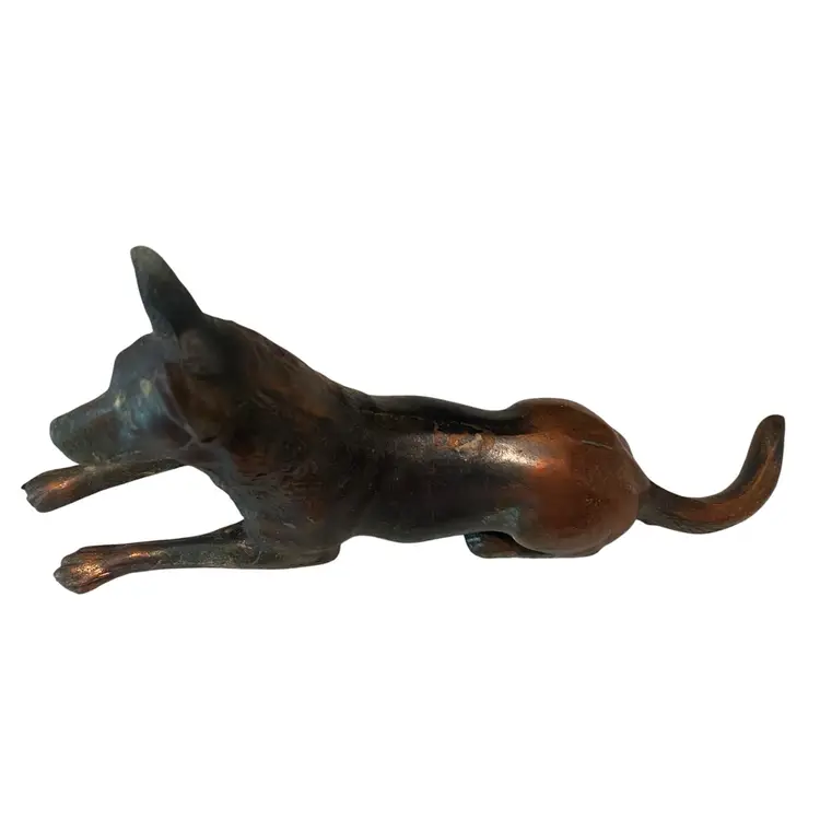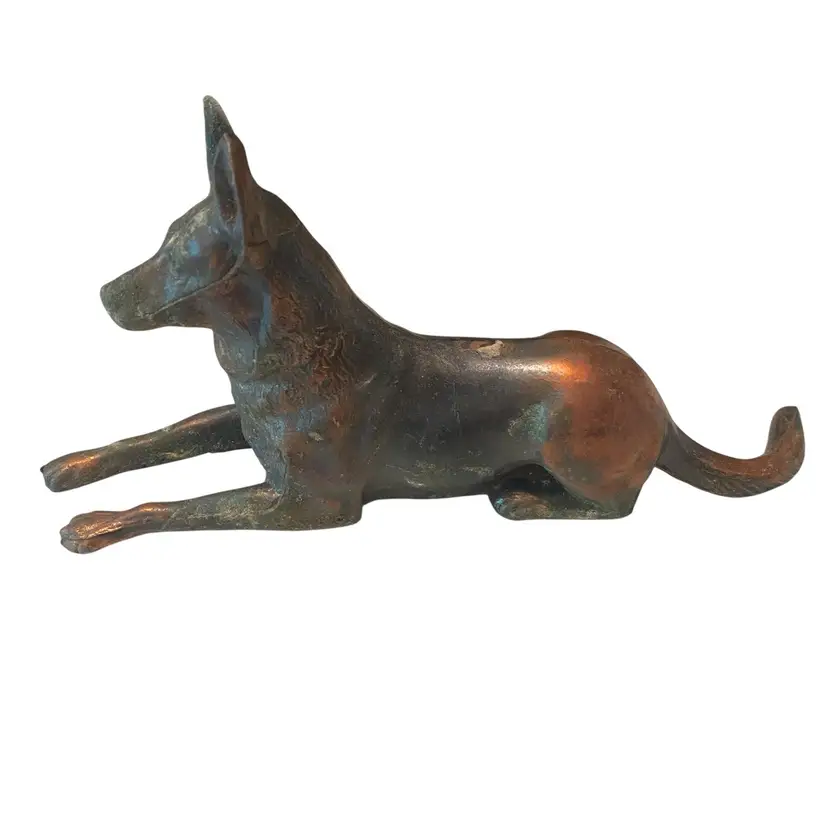 Large Bronze German Shepherd Figurine – Great Showpiece 6.5in long 3in tall
