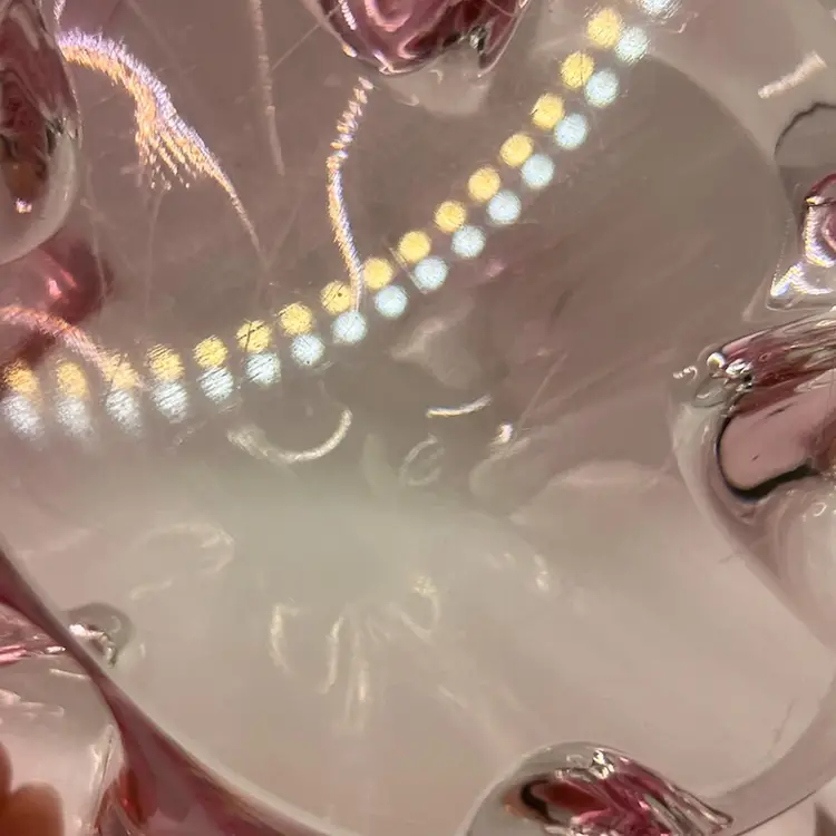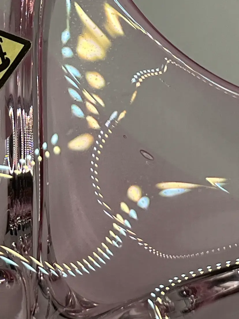 No chips. Has some scratching on the bottom of the base. Hard to photograph. There are a few small, minor scuffs. Weighs 4.4 pounds. Please see all pictures!