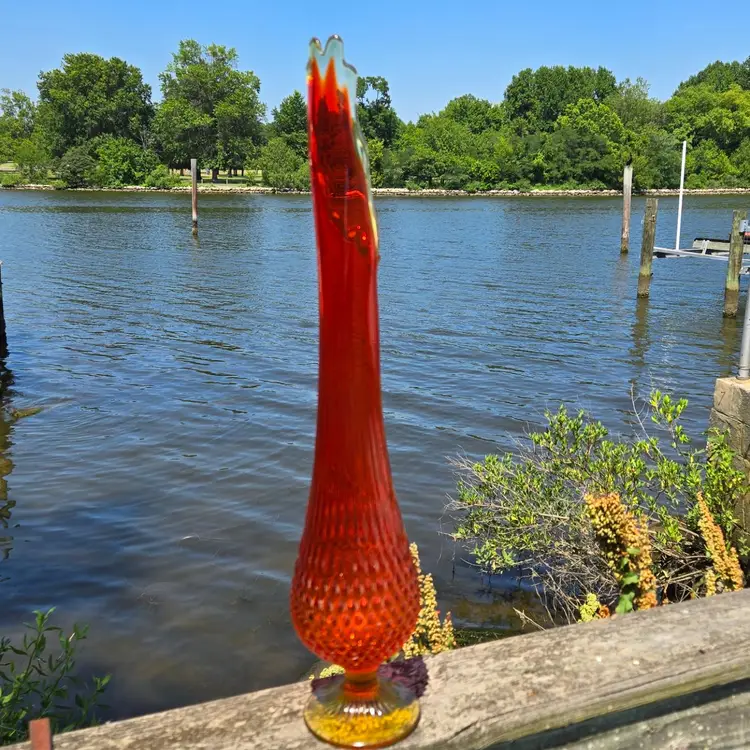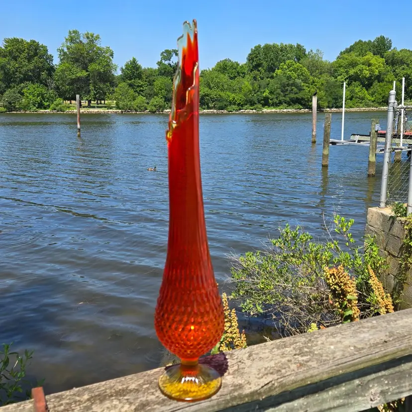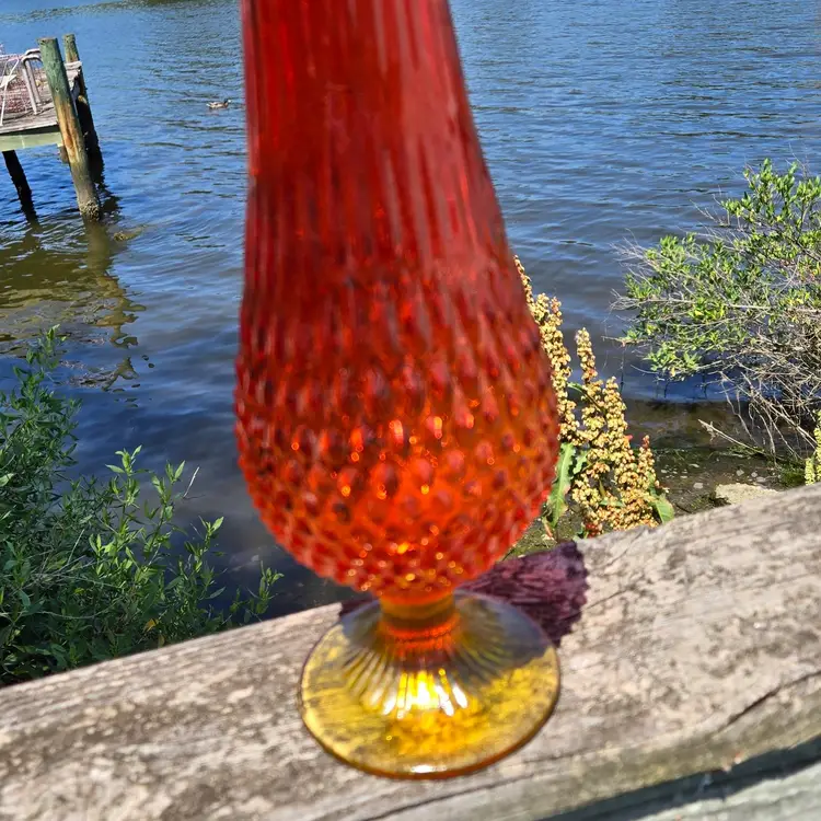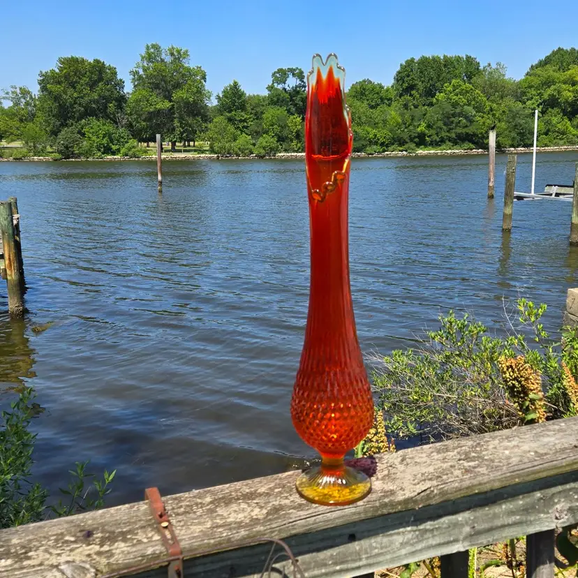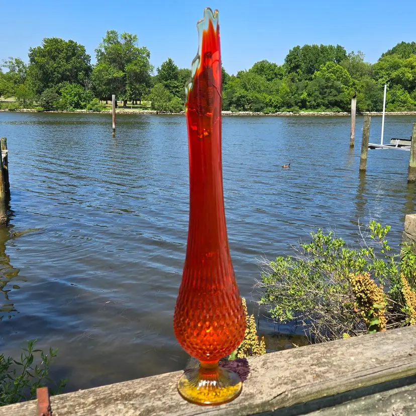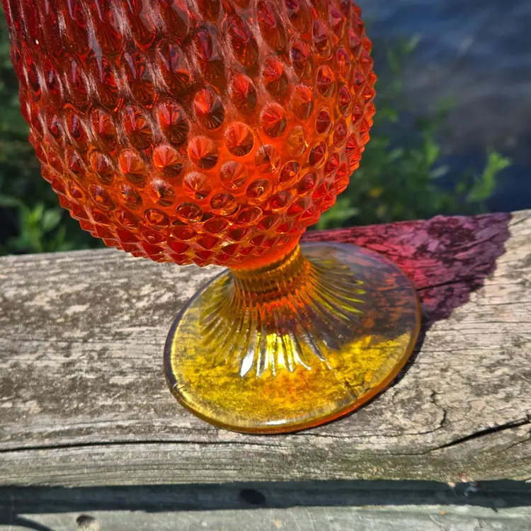 Large Fenton Amberina Swung Vase VTG Hobnail Stretch Orange Yellow Pedestal 23" GLOWS