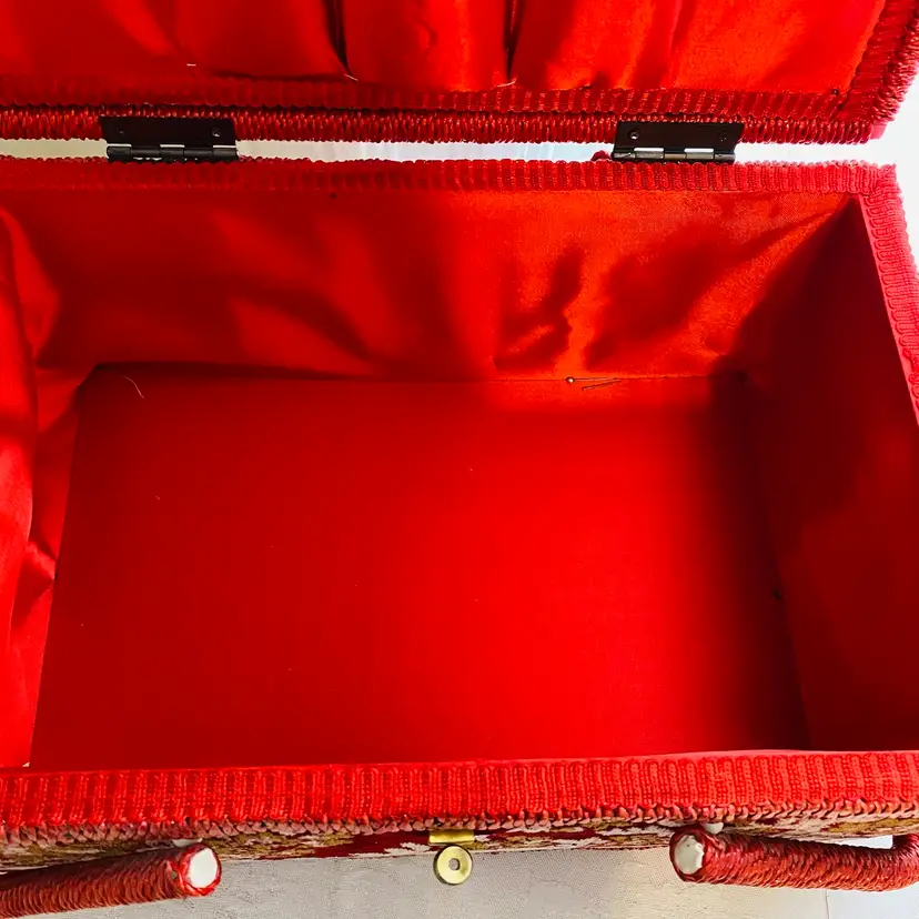Double handles with raffia roping. 15 x 10 x 8 inches Appears unused